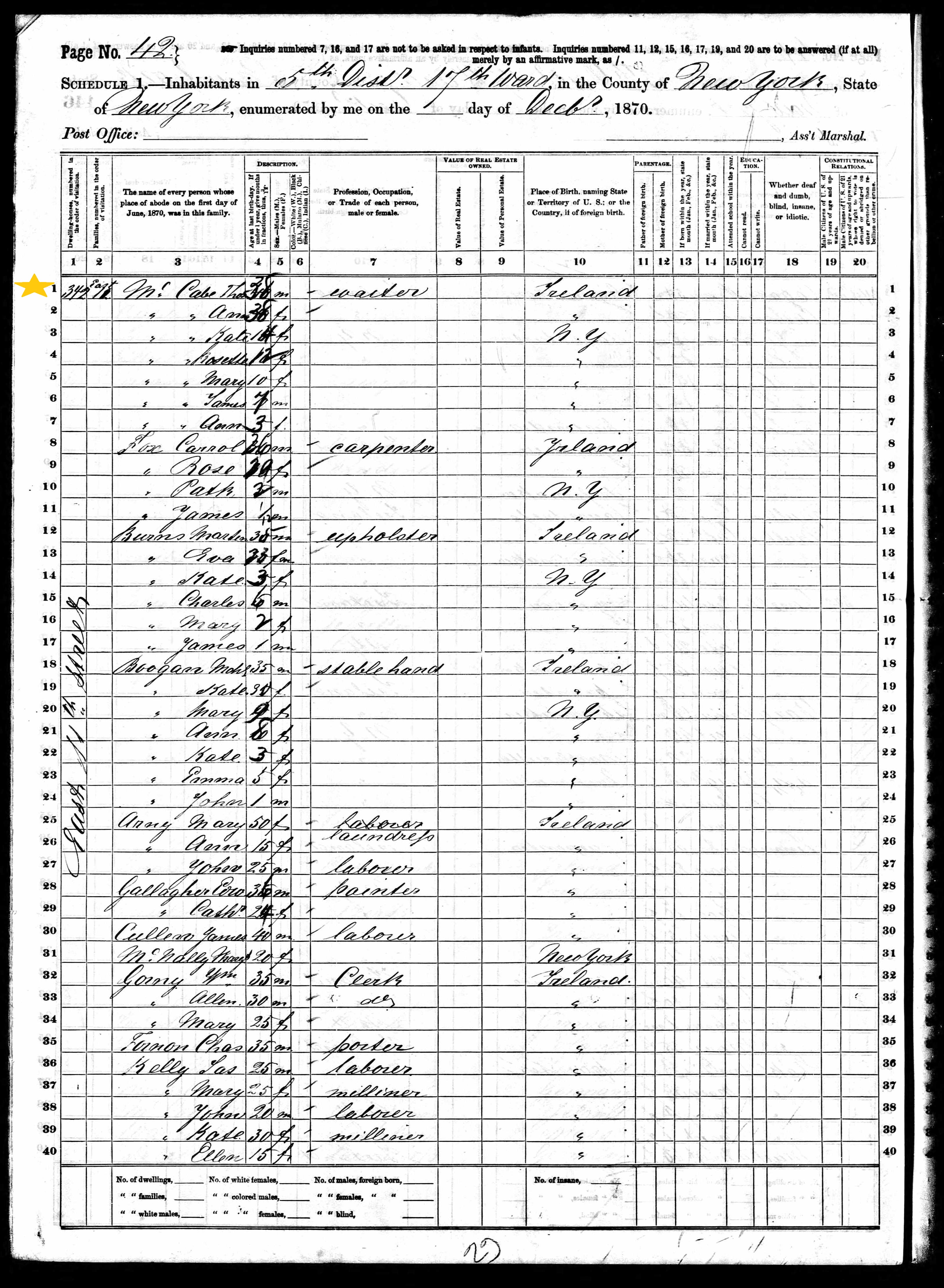 Thomas McCabe; 1870 Census