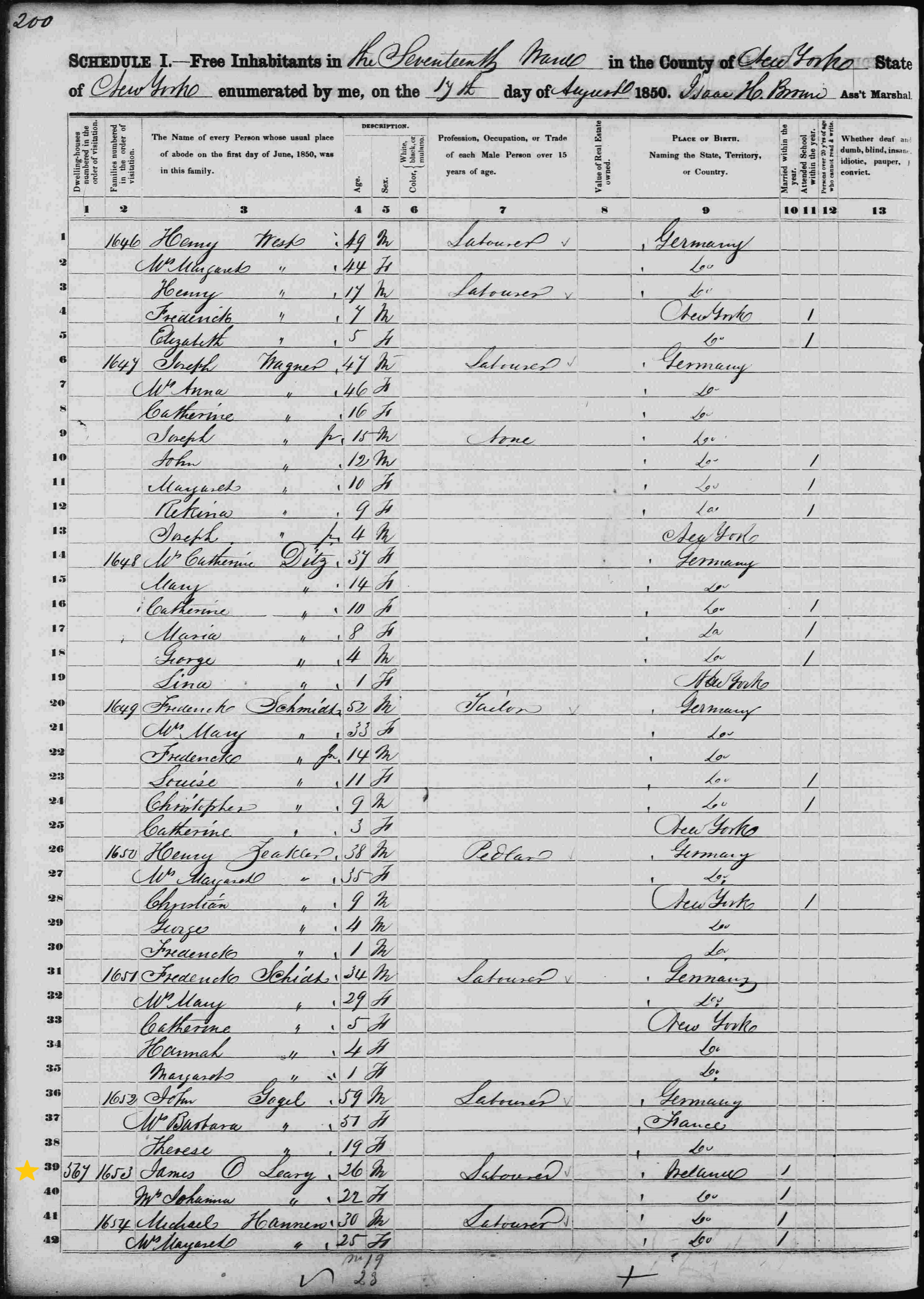 James O'Leary; 1850 Census
