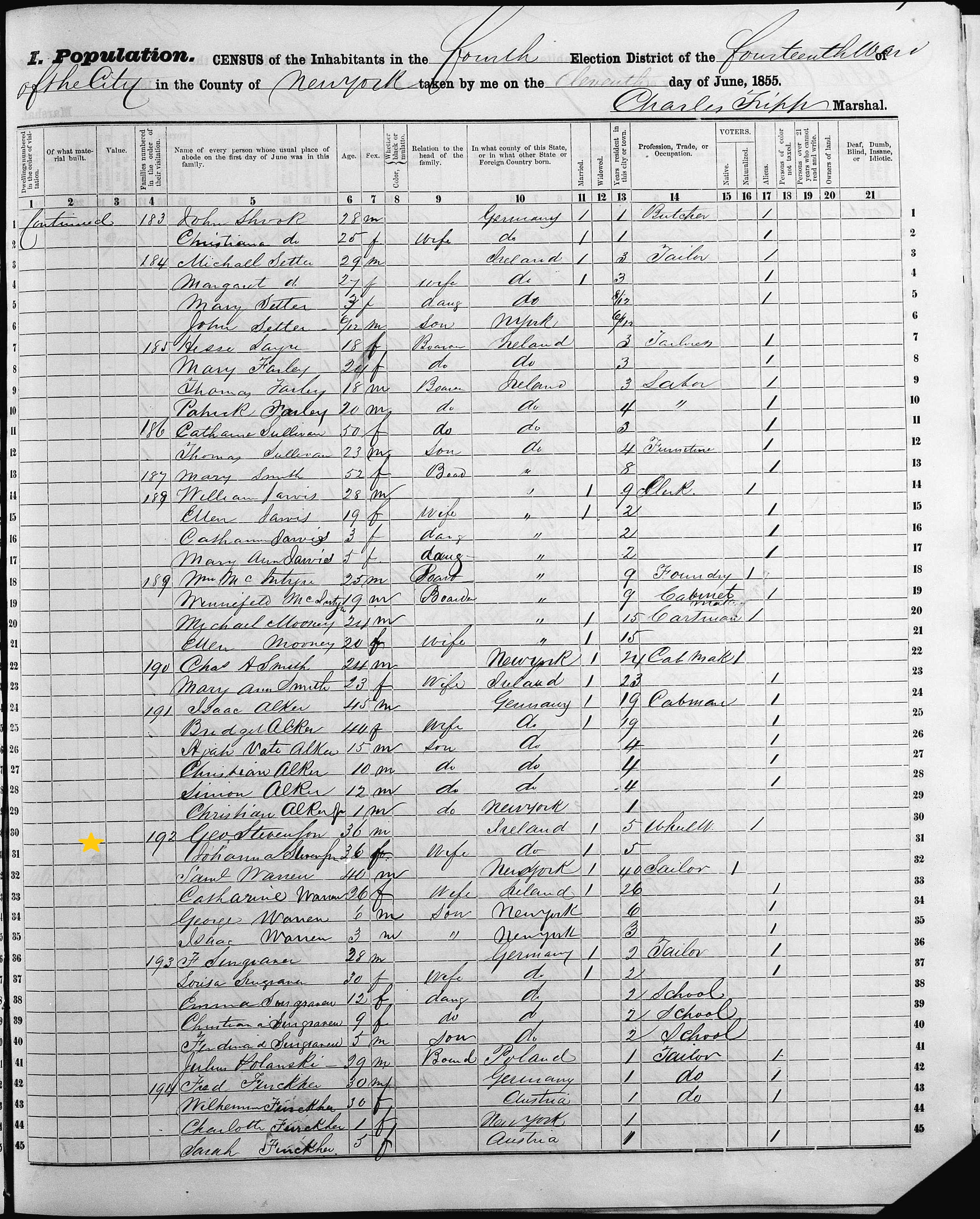 George and Johanna Stephenson; 1855 Census