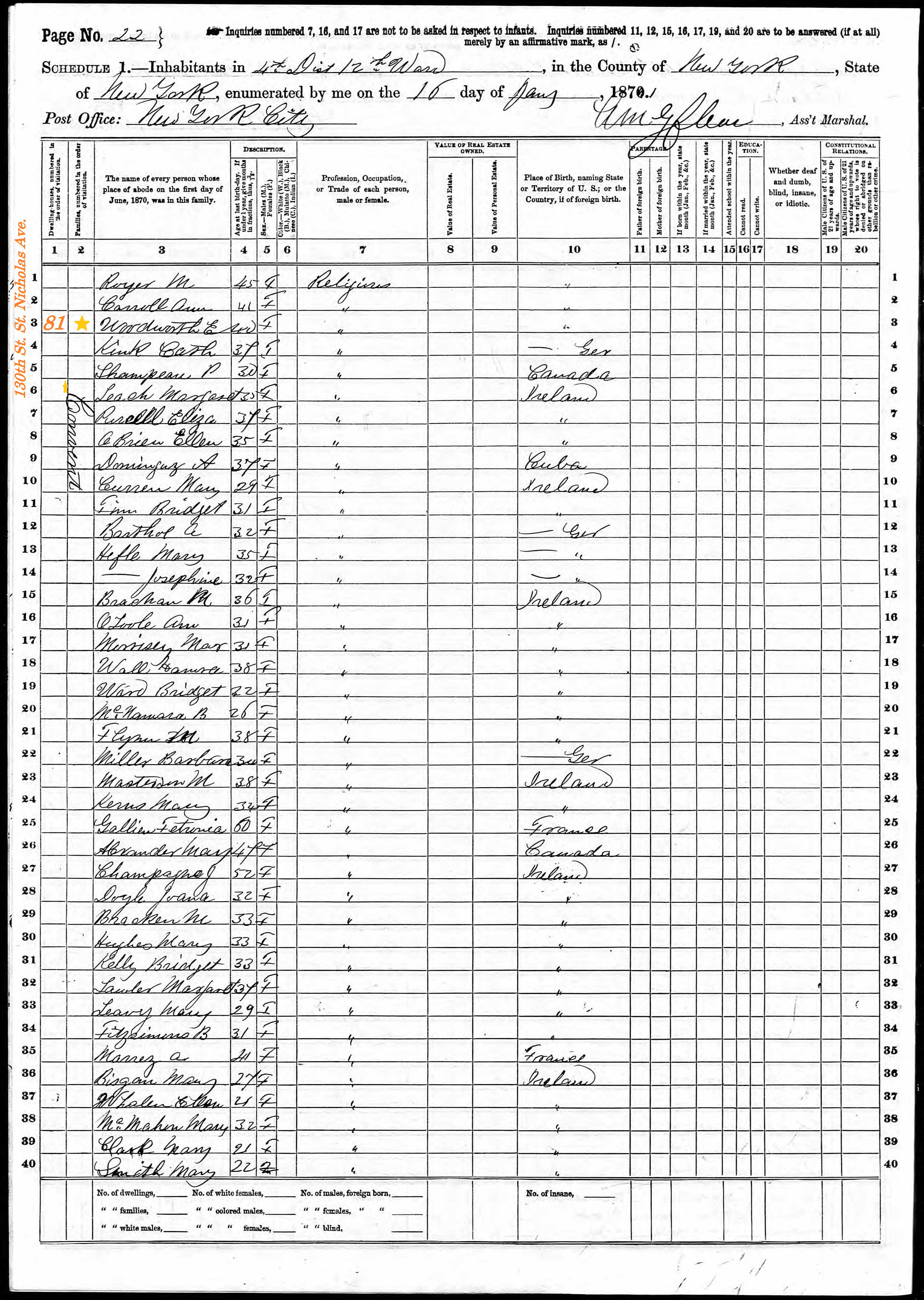 Ellen Woodworth; 1870 Census
