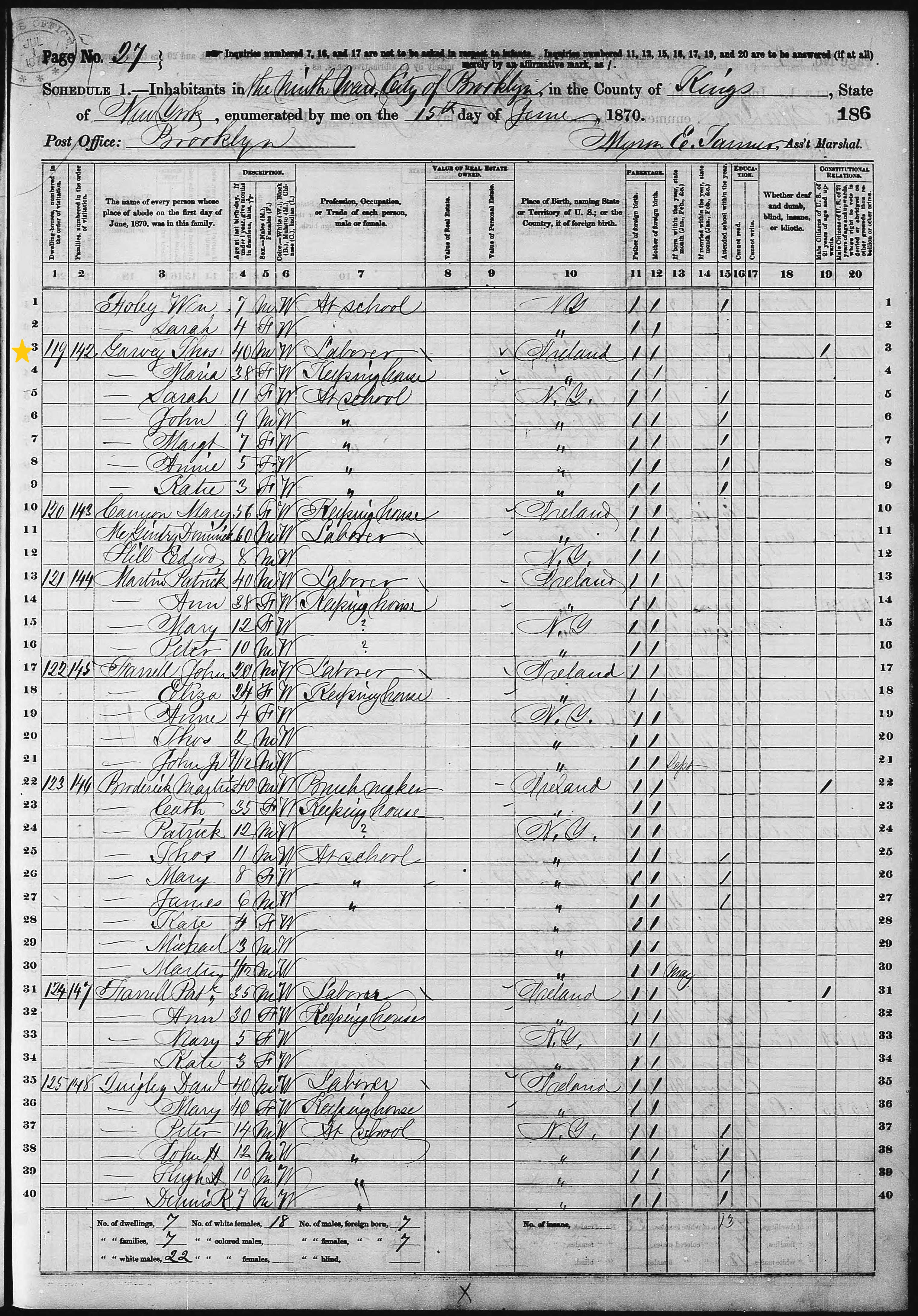 Thomas Garvey; 1870 Census