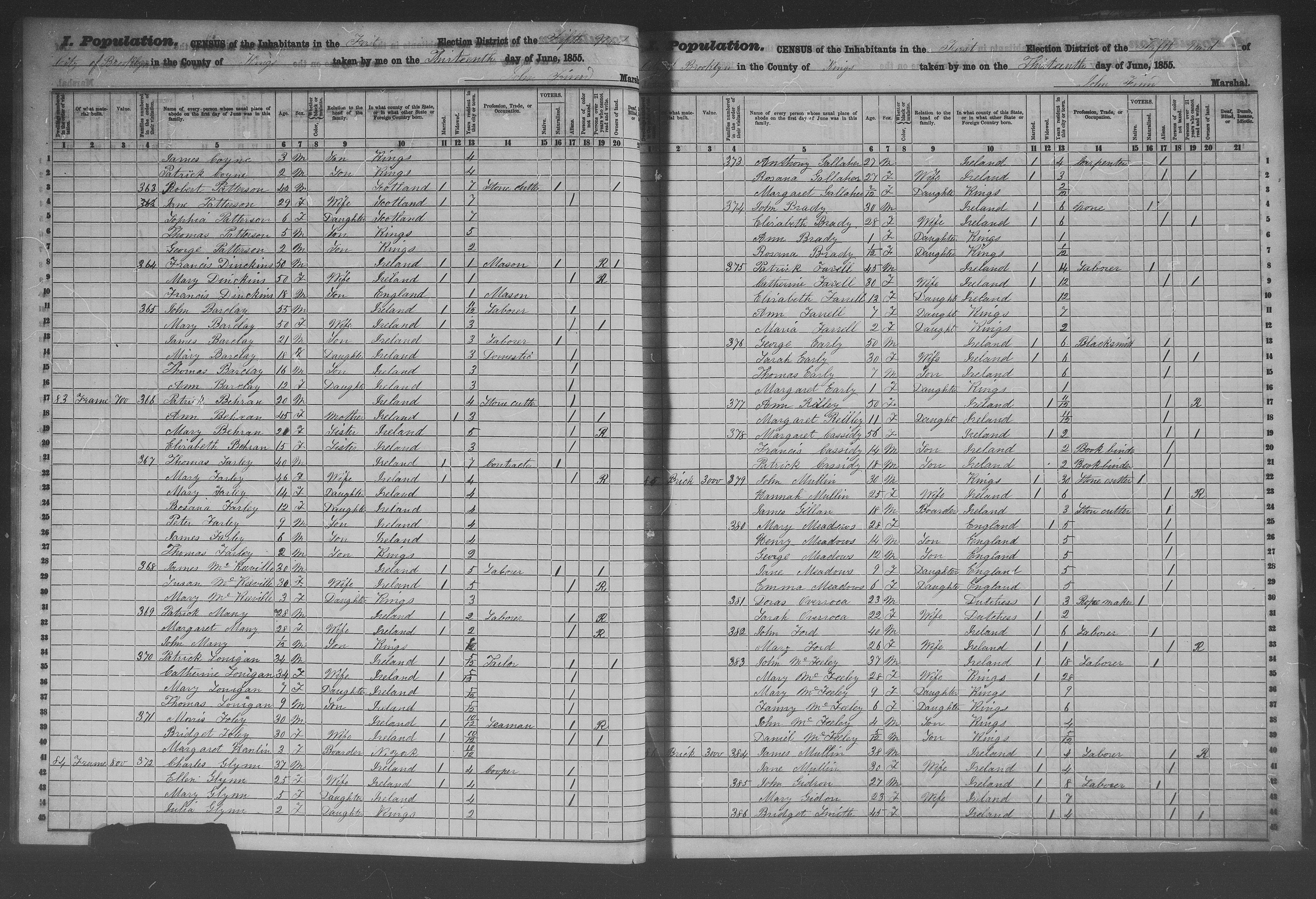 John Brady; 1855 Census