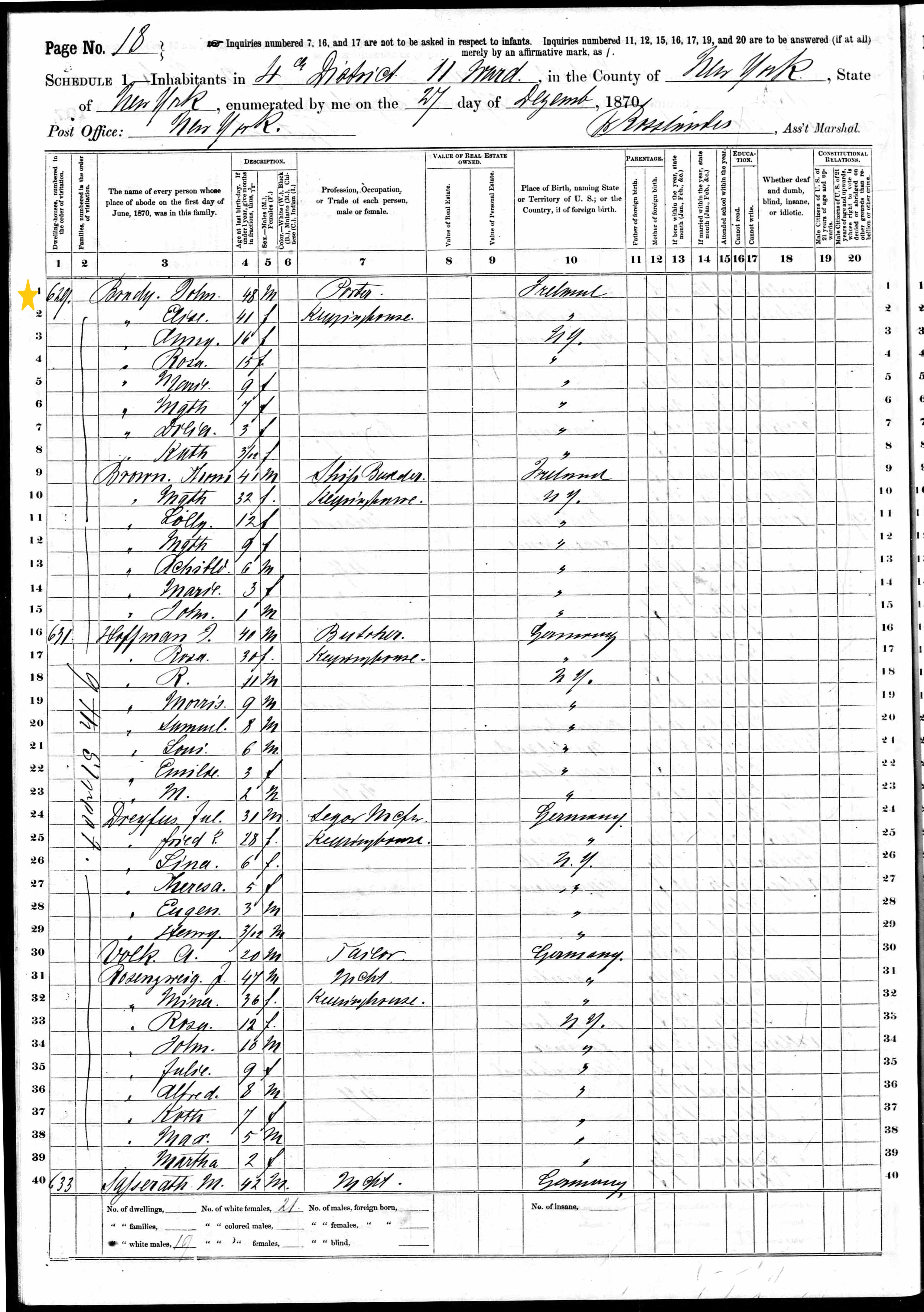 John Brady; 1870 Census