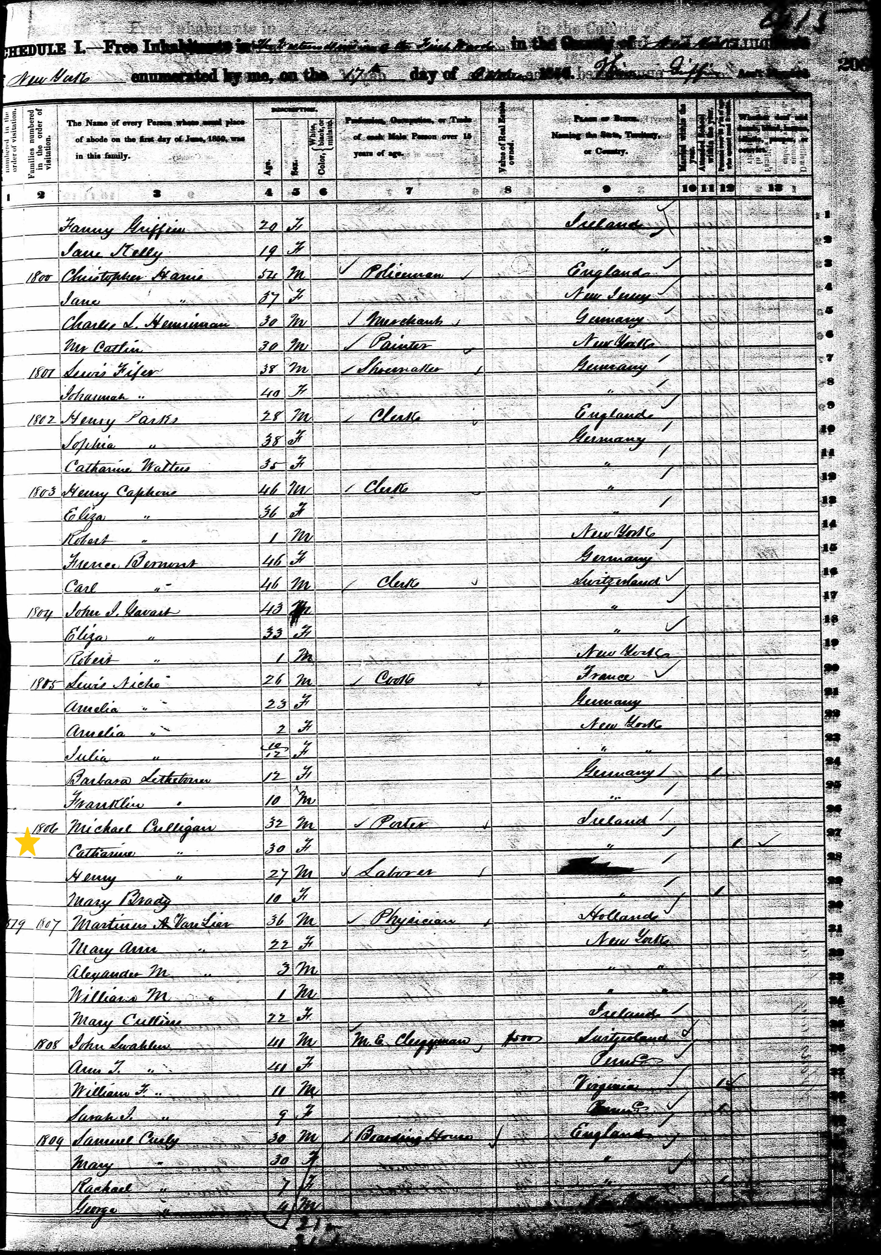 Henry Colligan; 1850 Census