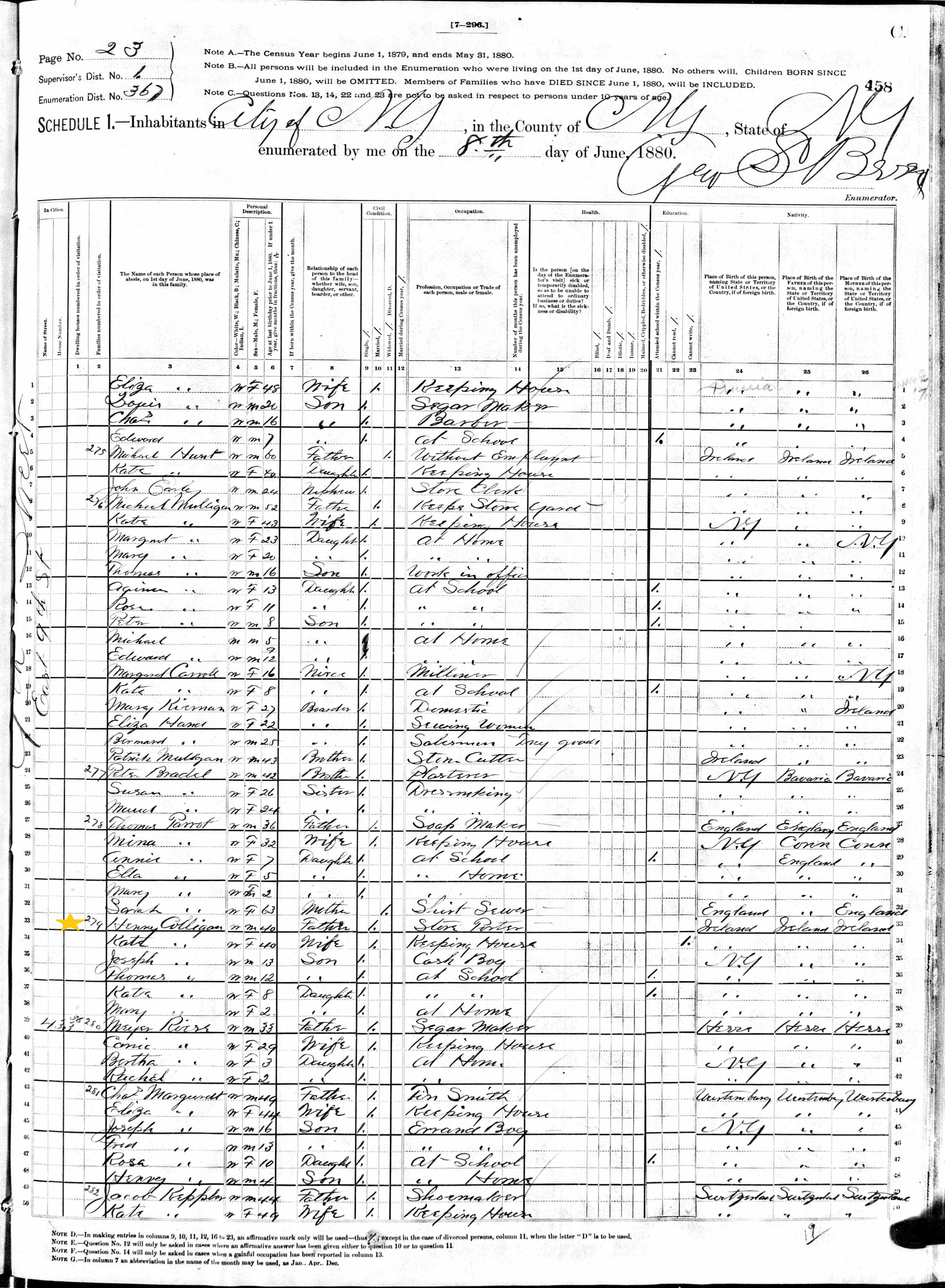 Henry Colligan; 1880 Census