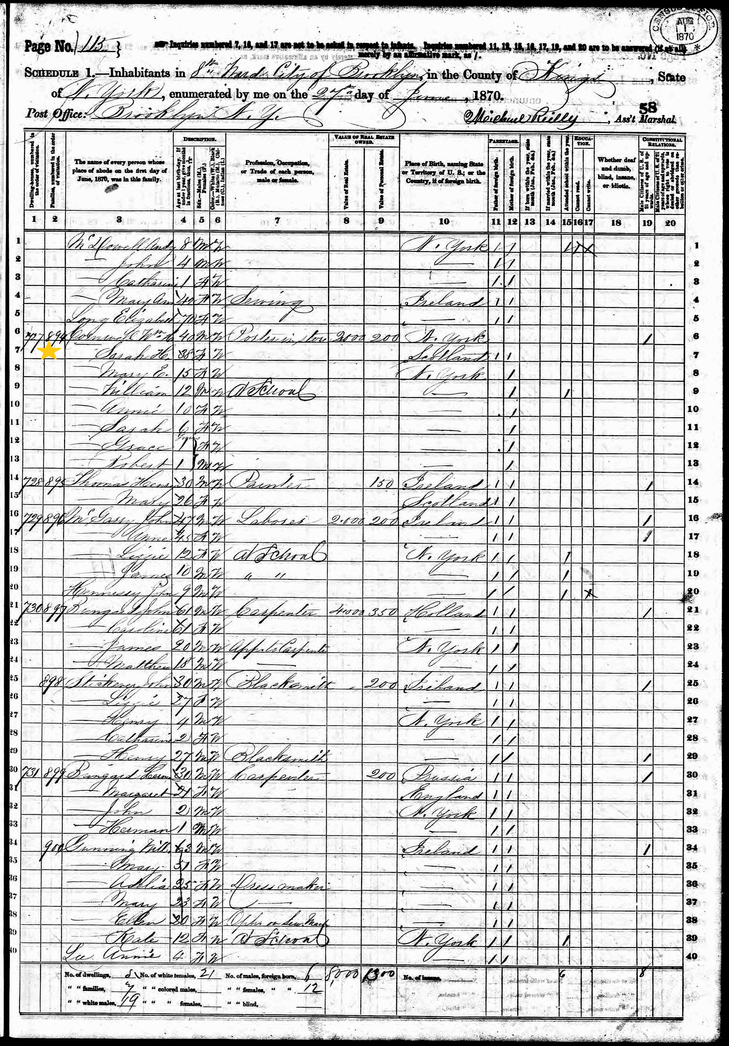 William H. Cornwall; 1870 Census