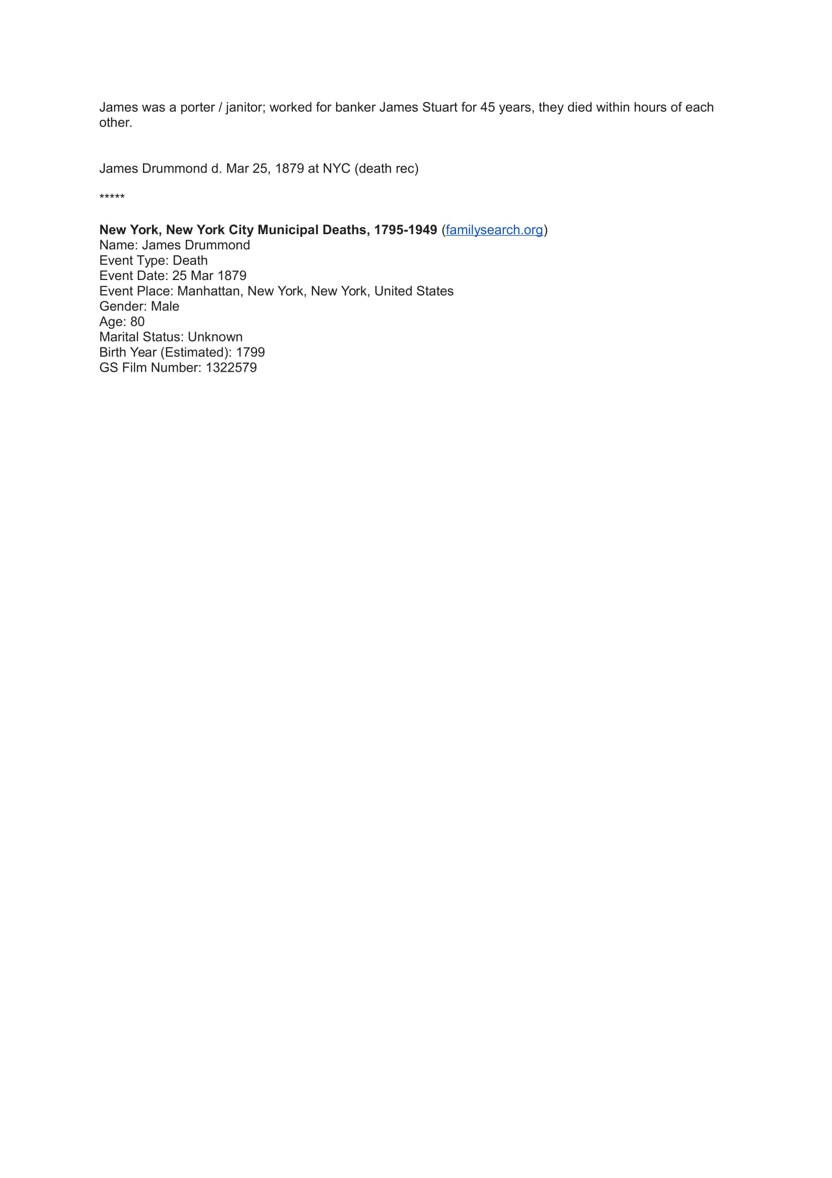 James Drummond Additional Information