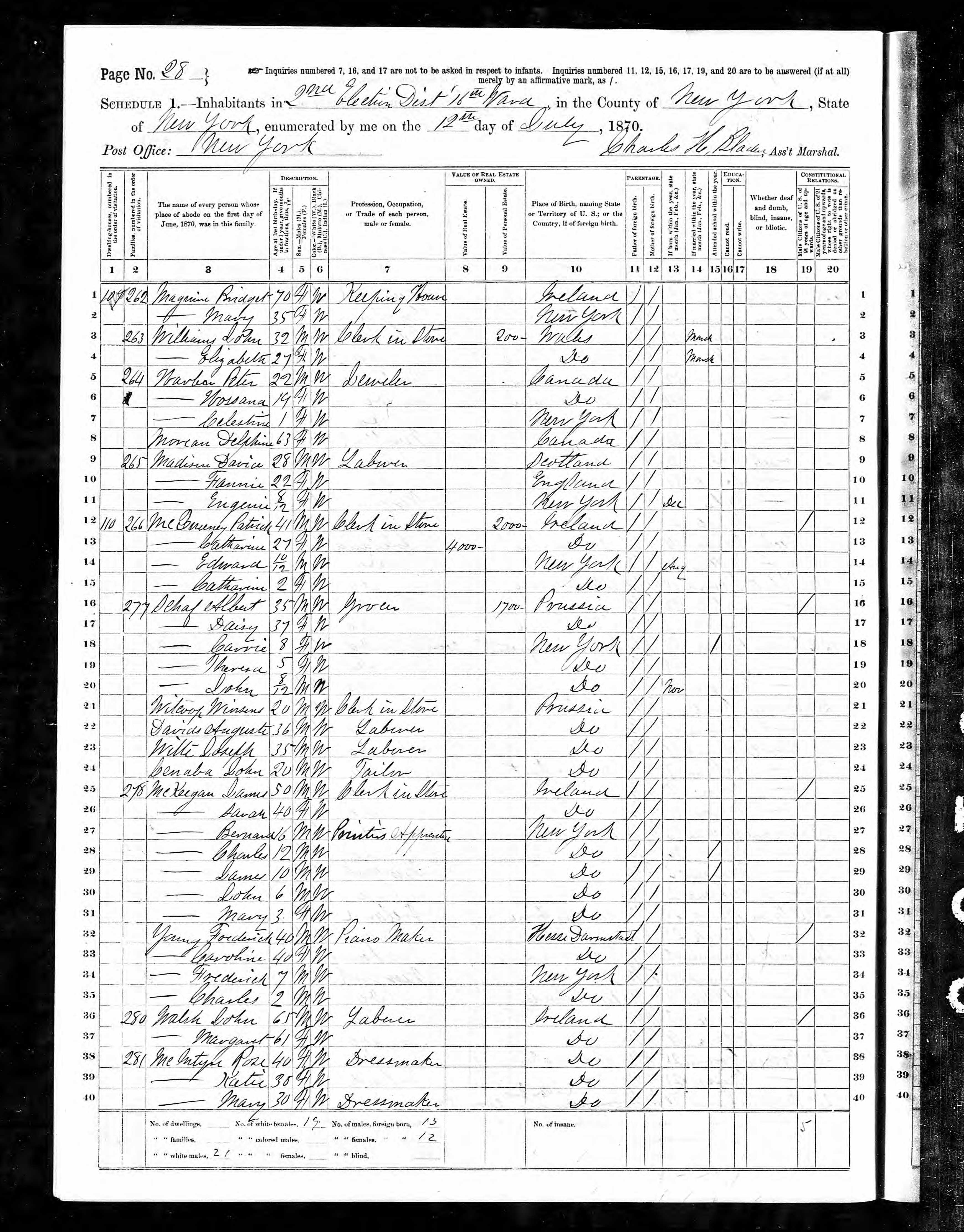 James McKeegan; 1870 Census