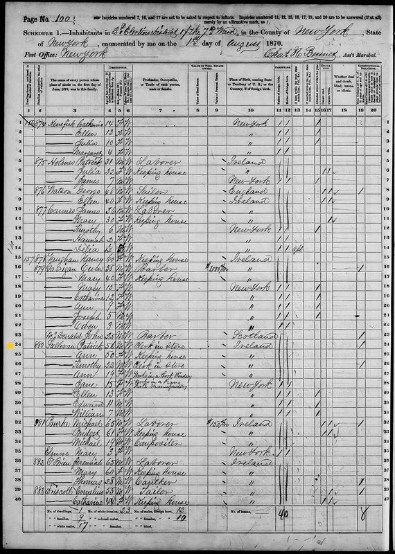 Patrick Sullivan; 1870 Census