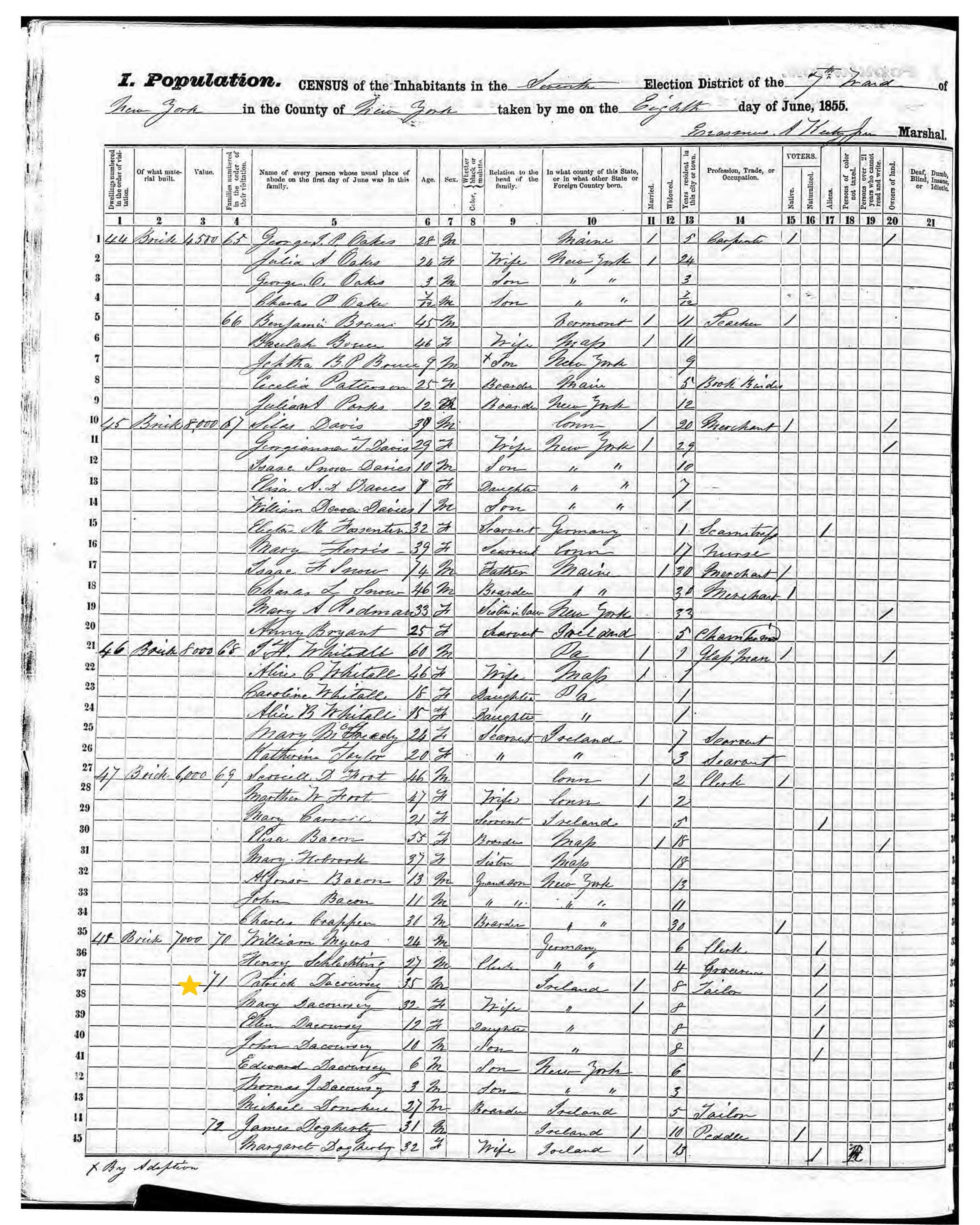 Patrick DeCourcy; 1855 Census