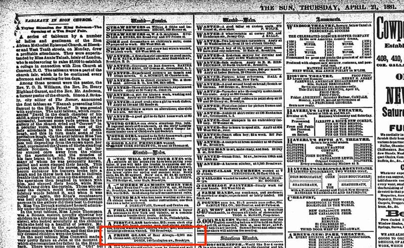 James Dorin Mentioned in Newspaper, "A Fresh Glass of Beer"