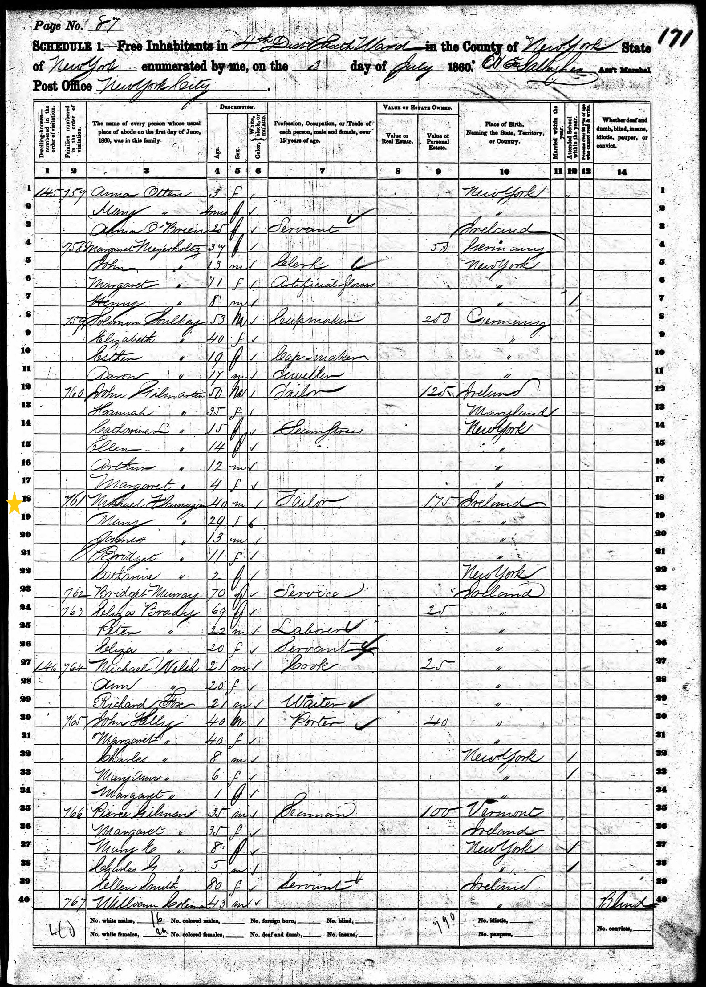 Michael Flanigan; 1860 Census