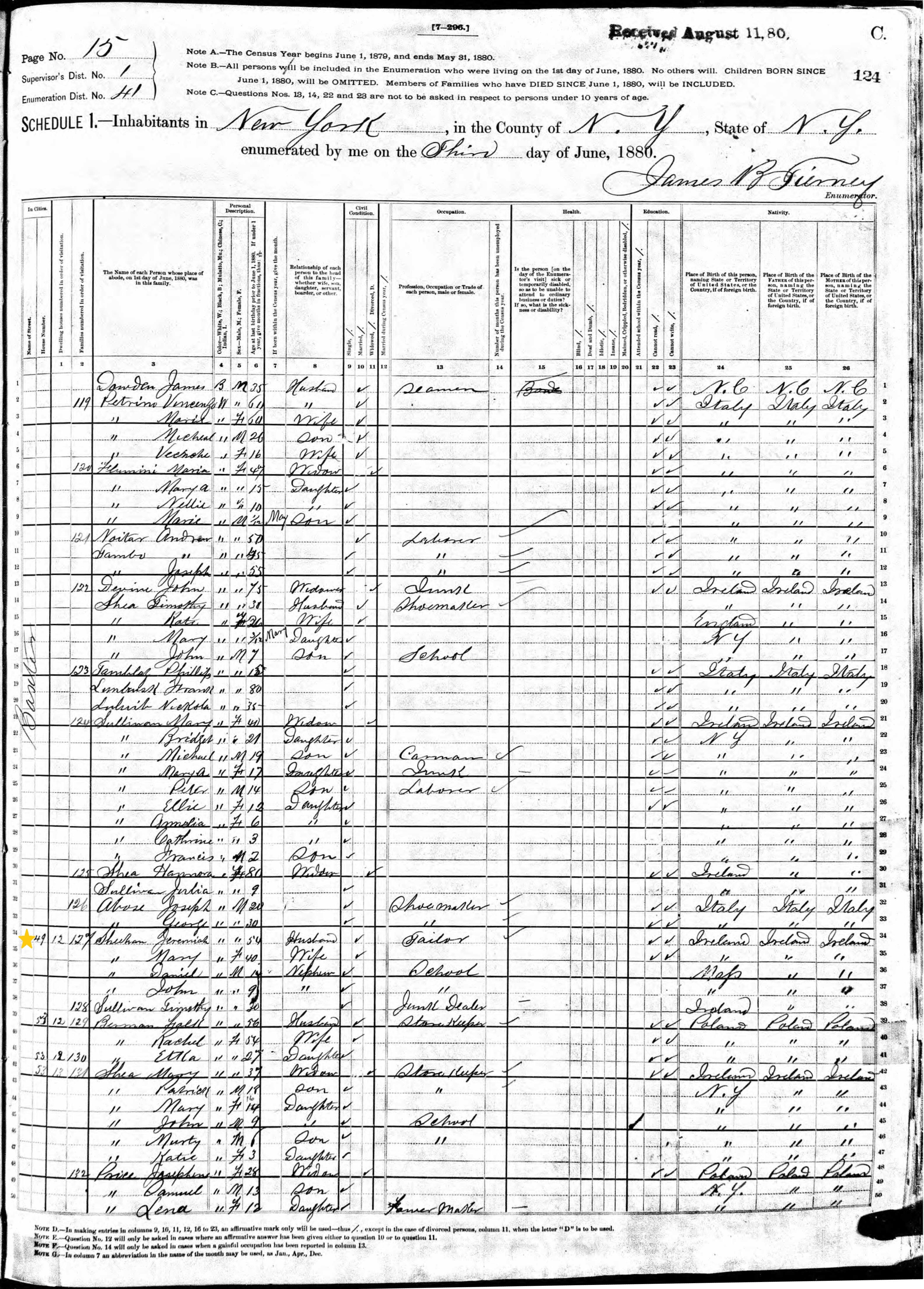 Jeremiah Sheehan; 1880 Census