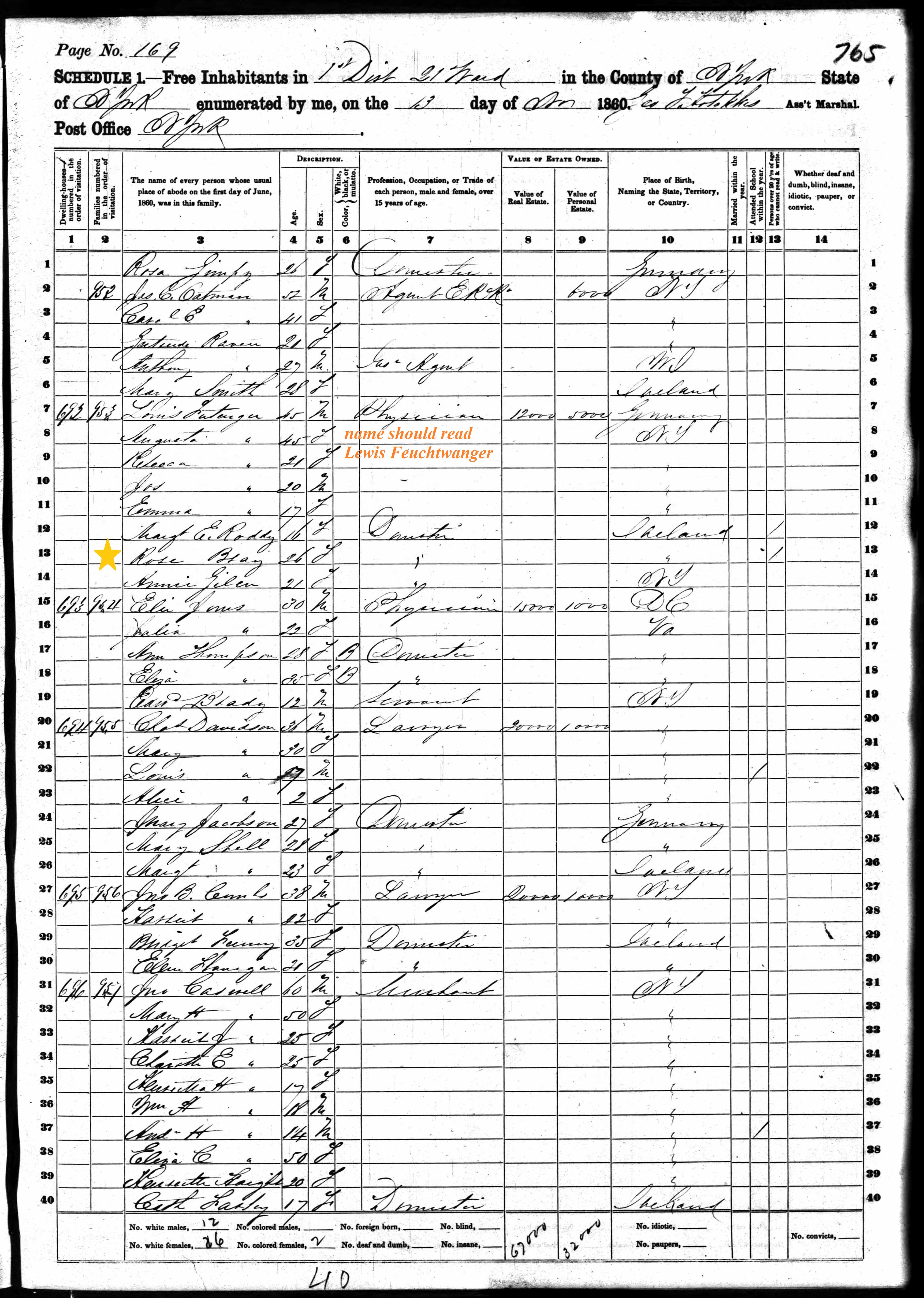 Rose Bray; 1860 Census