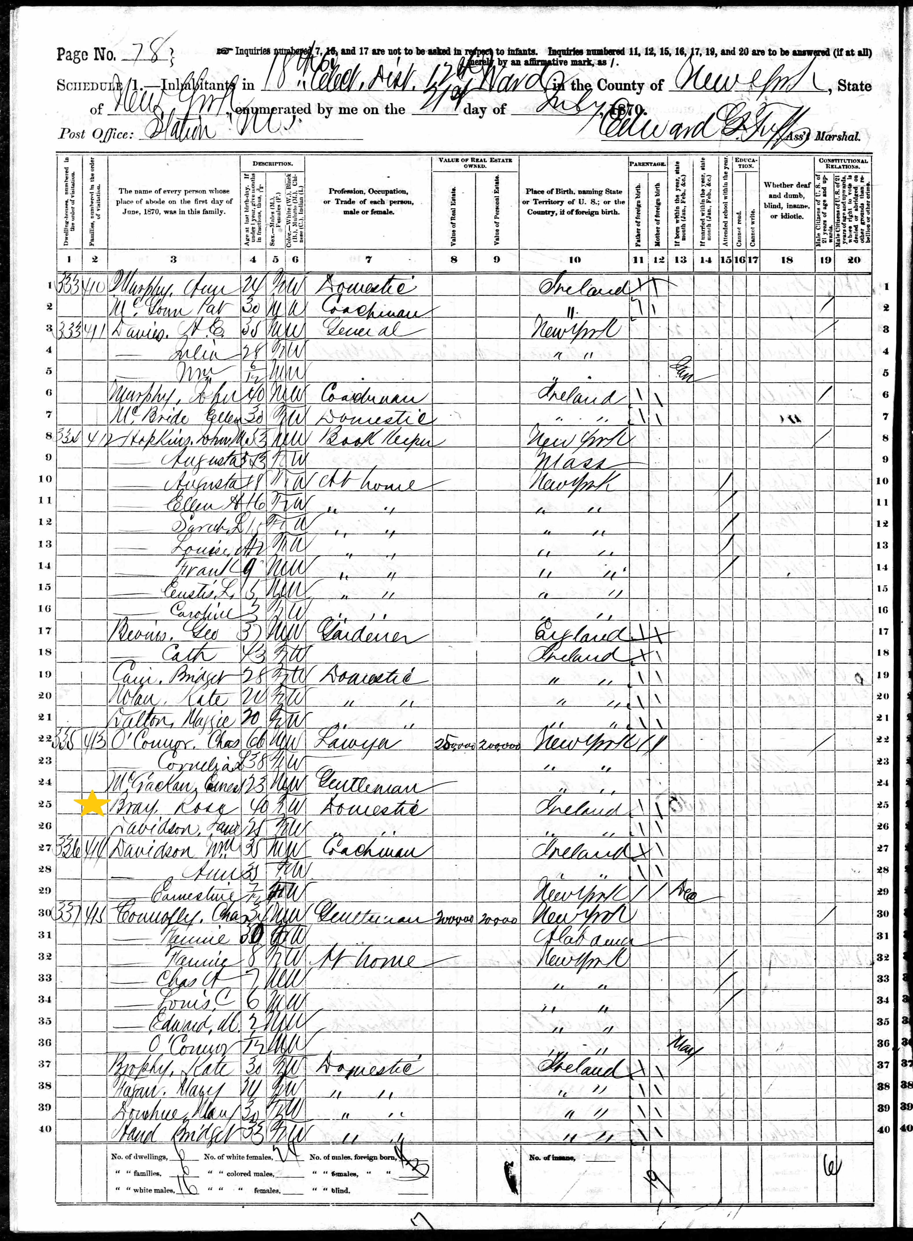 Rose Bray; 1870 Census