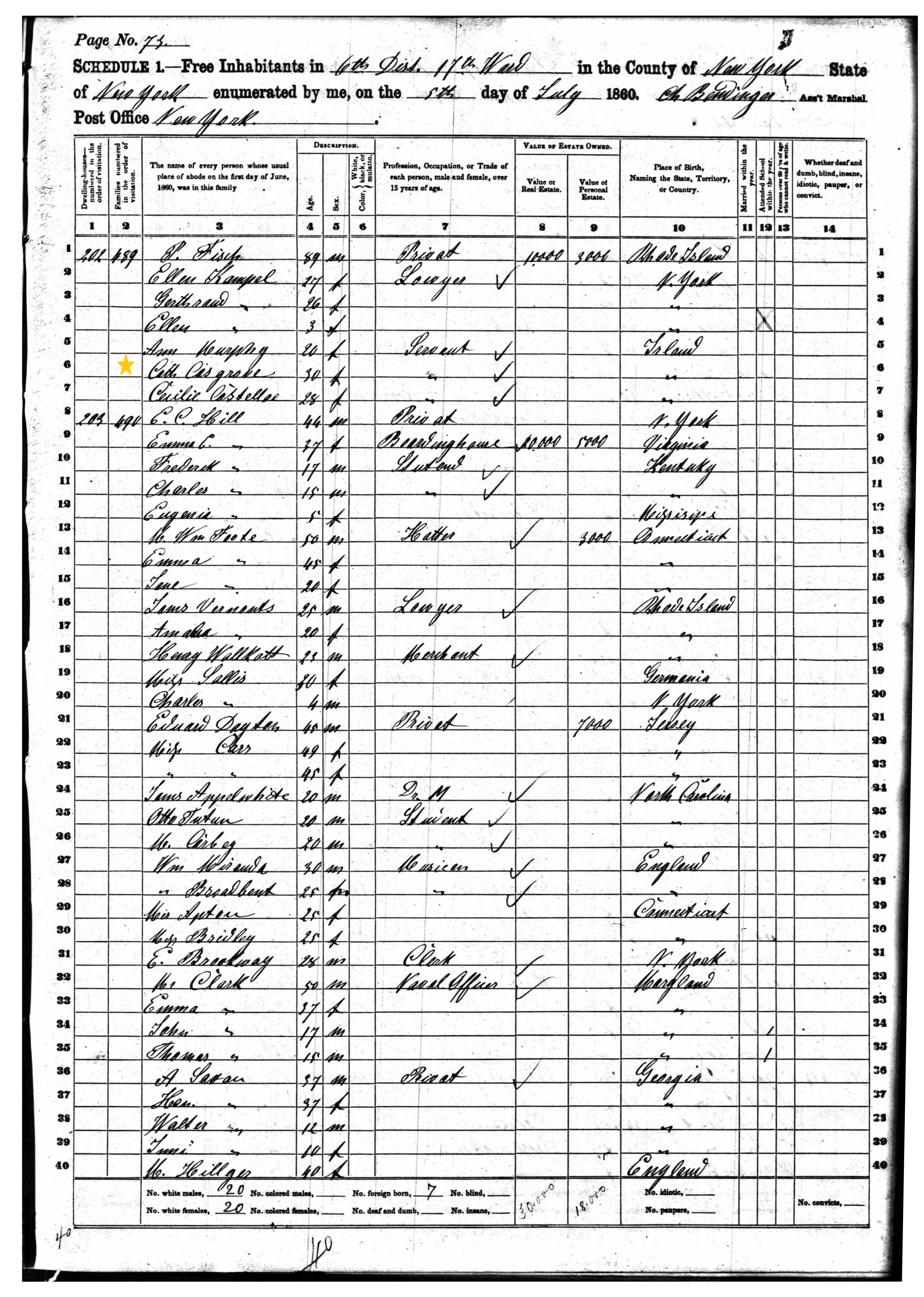 Catherine Cosgrove; 1860 Census