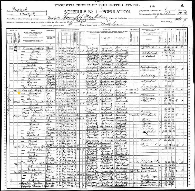 Winifred Crosby; 1900 Census (Identified as Winifred Danaher)