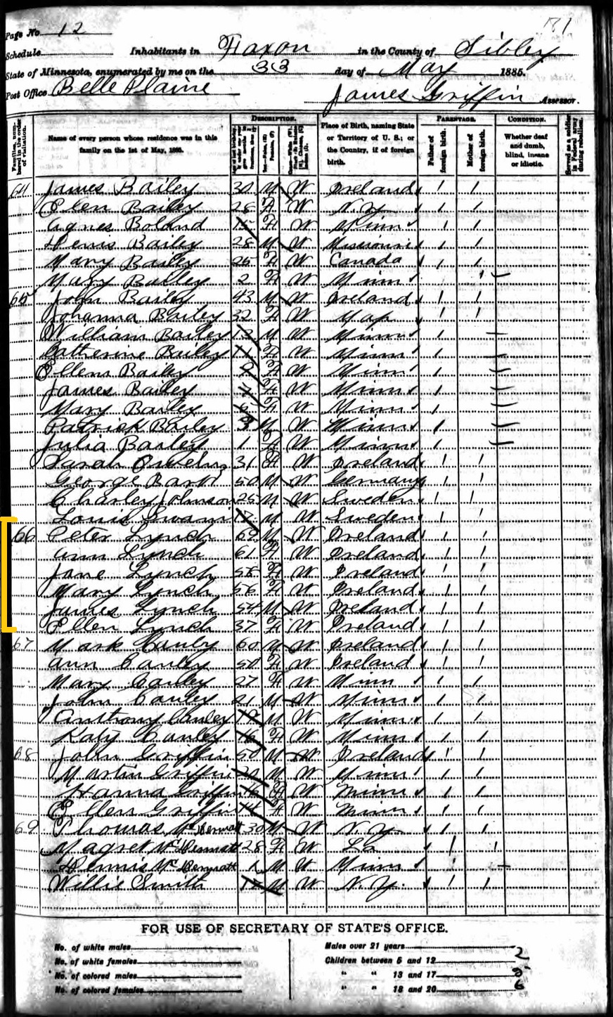 Ann, Jane, Ellen, Peter, and James Lynch; 1885 Census
