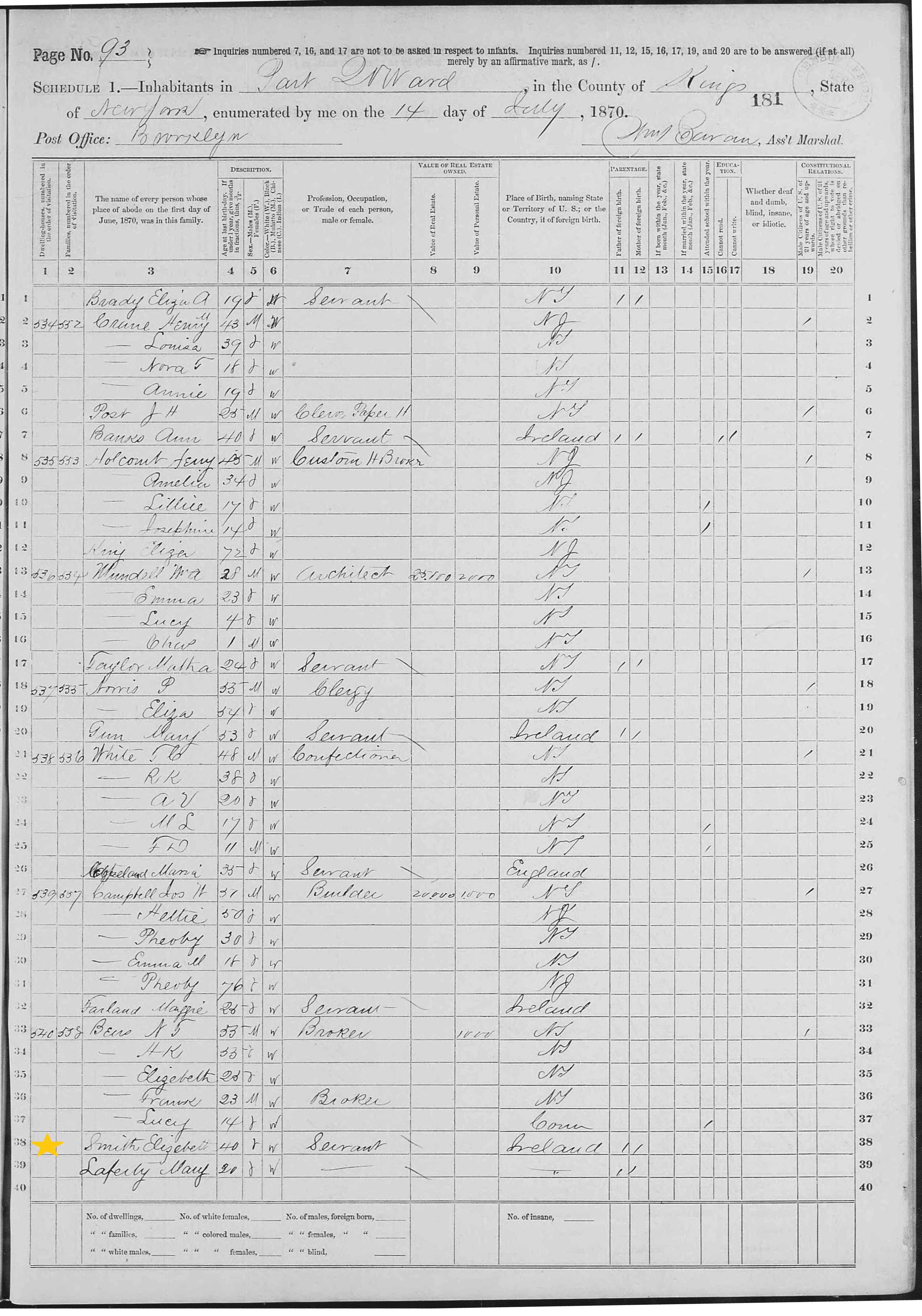 Elizabeth Smith; 1870 Census