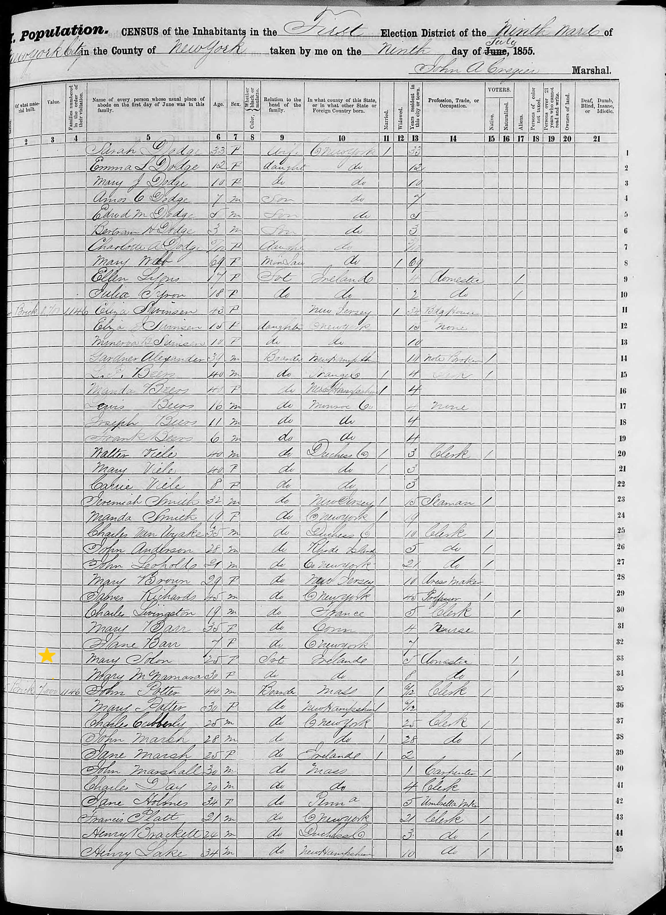 Mary Solan; 1855 Census