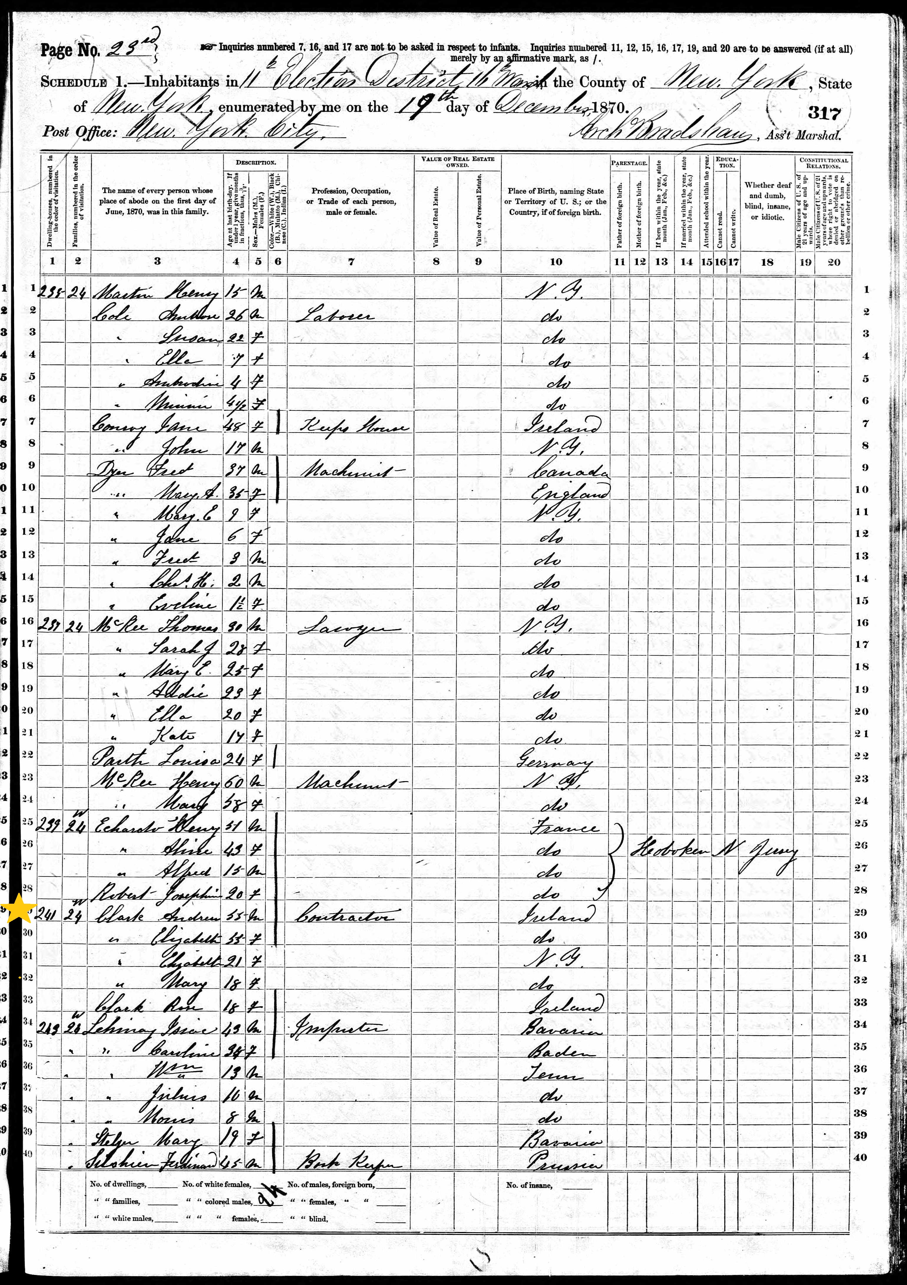 Andrew Clarke; 1870 Census