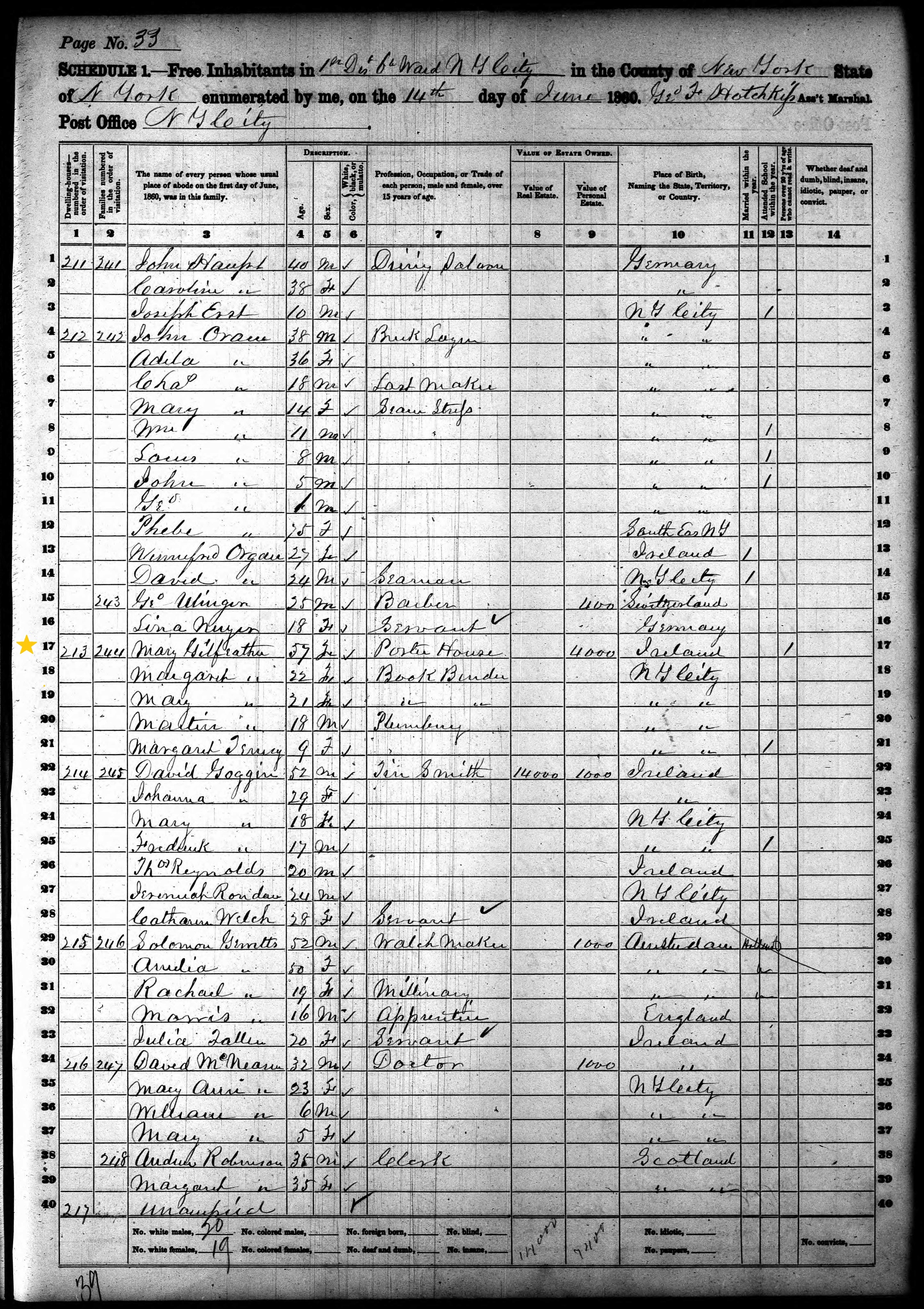 Mary Gilfeather; 1860 Census