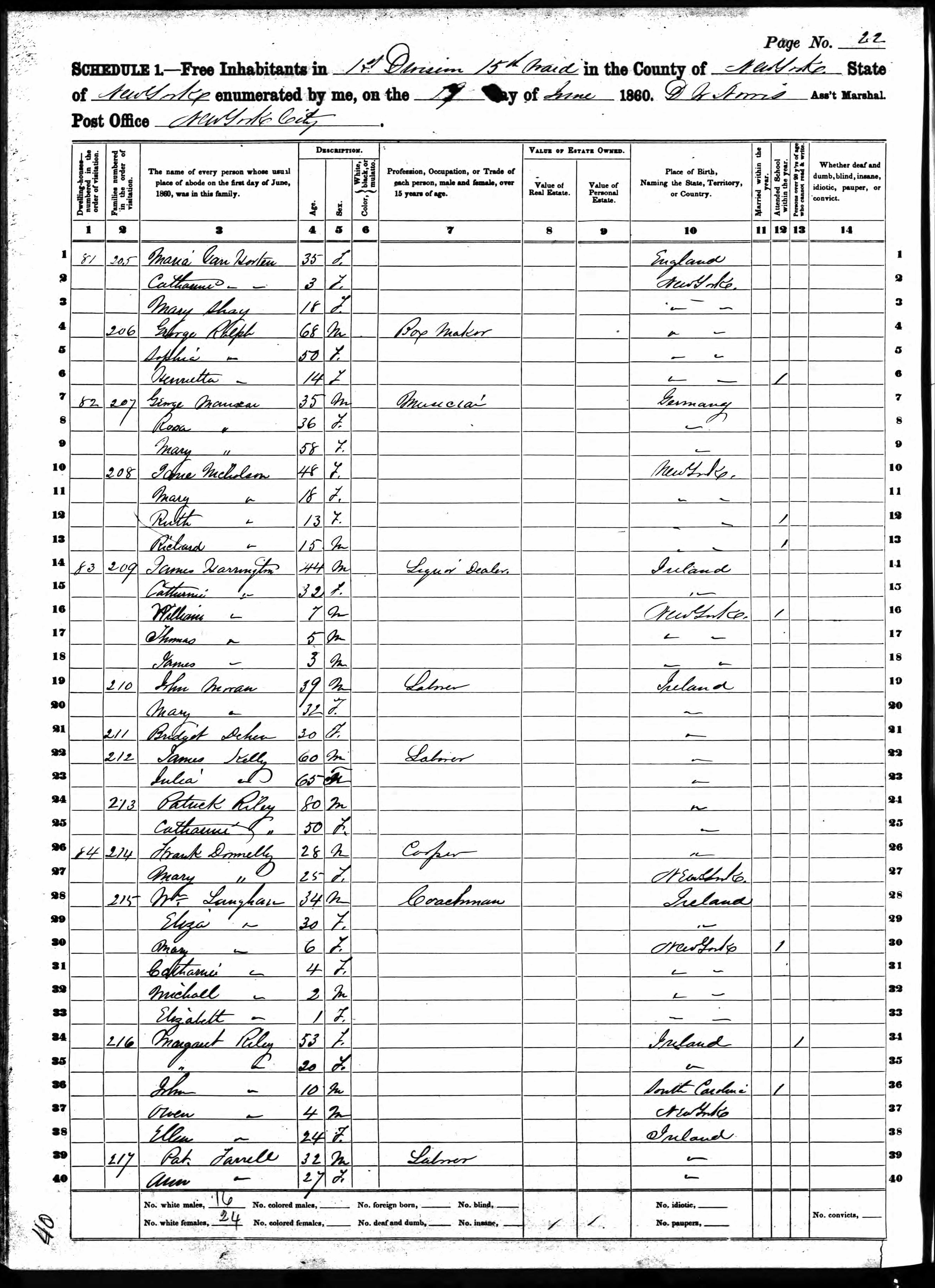 James and Catherine Harrington; 1860 Census
