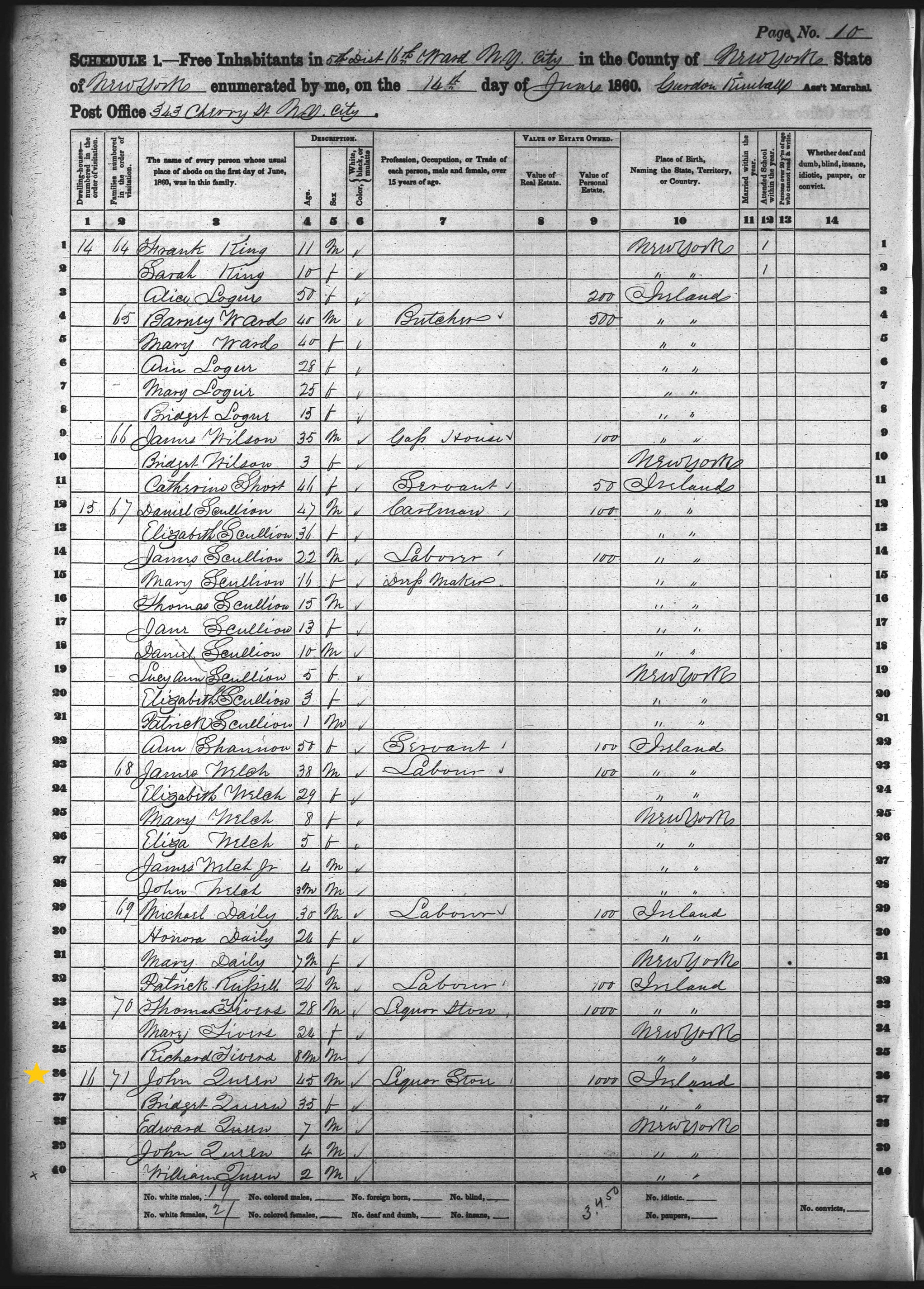 John Quin; 1860 Census (1)