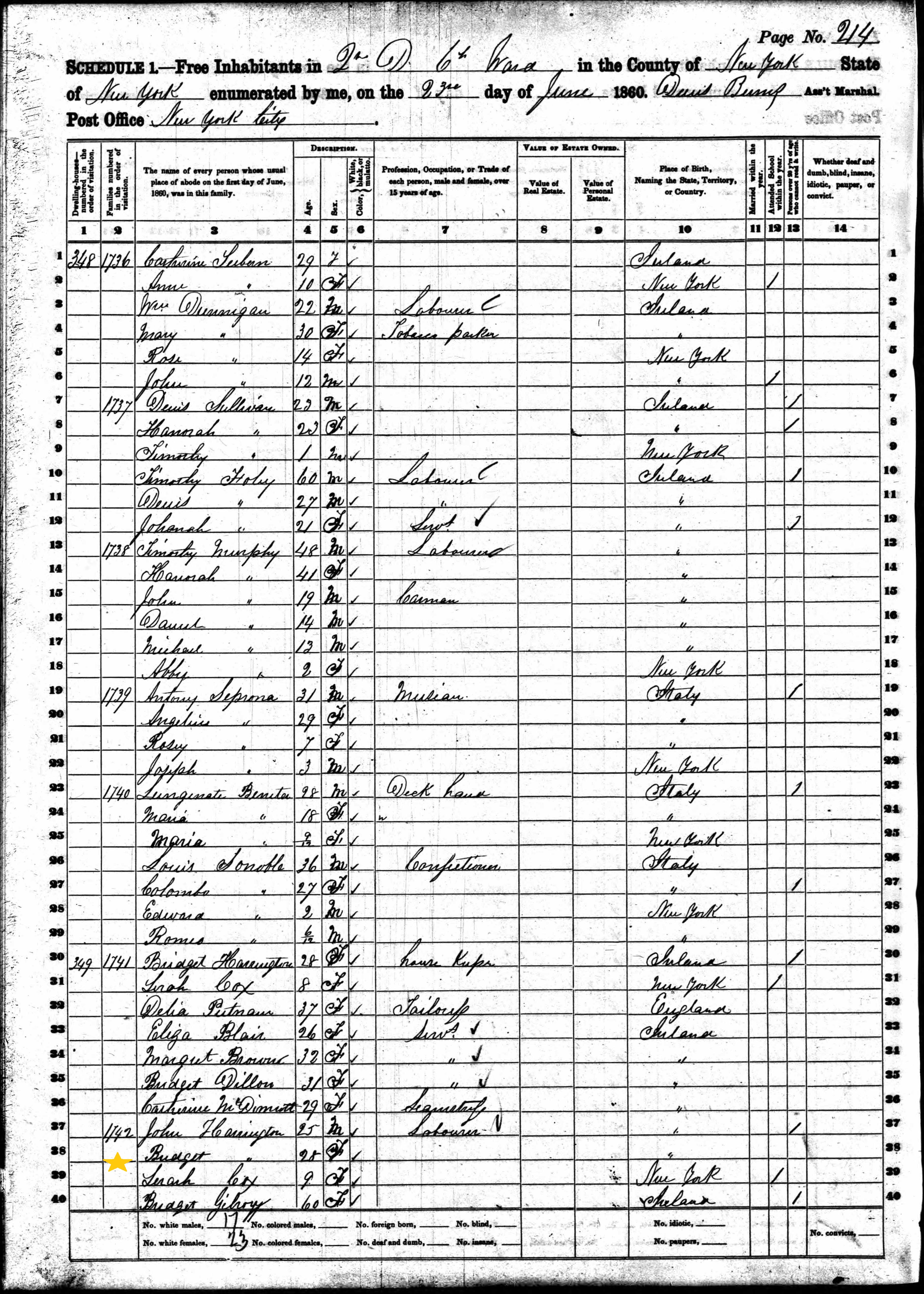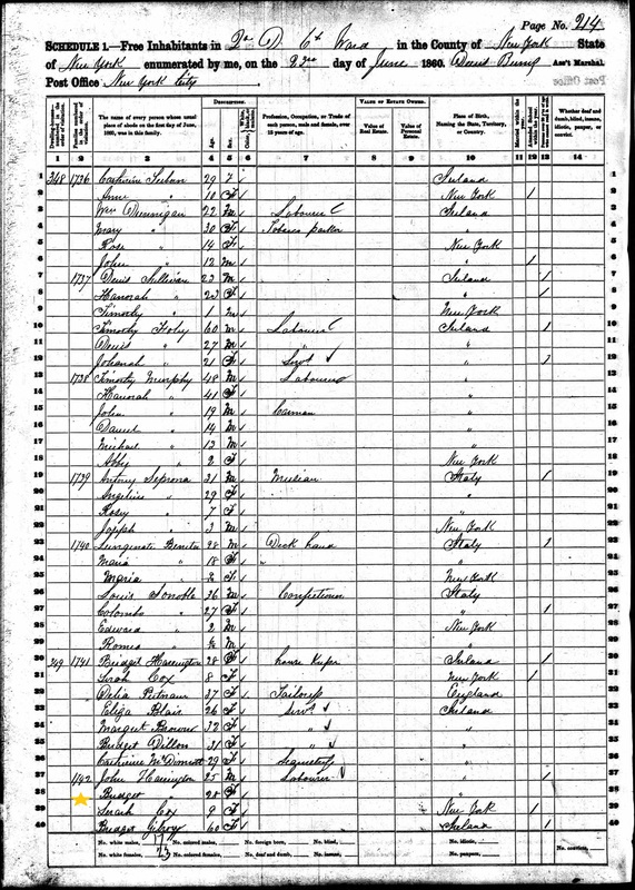 Bridget Cox; 1860 Census (Identified as Bridget Harrington)