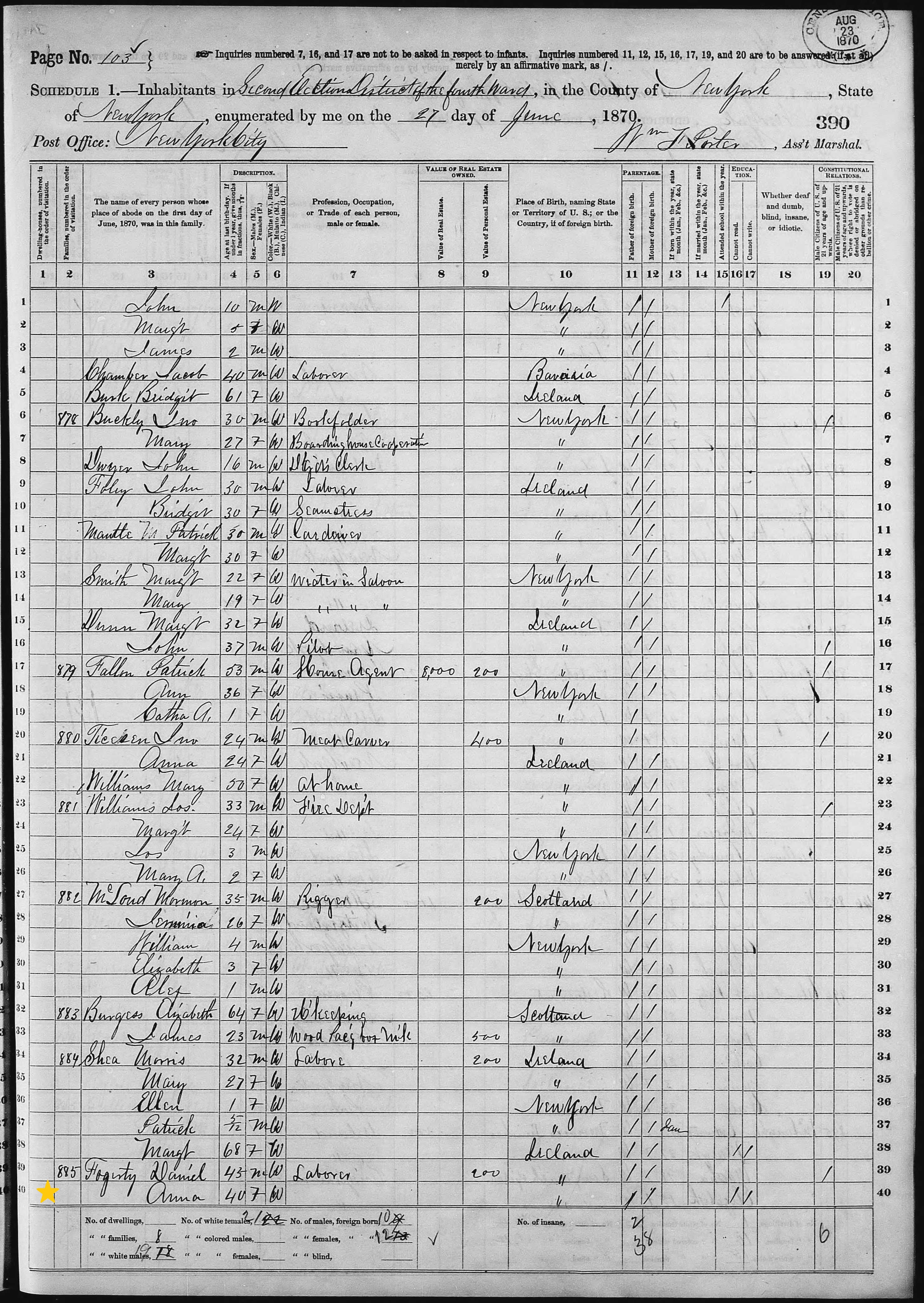 Ann Fogarty; 1870 Census (1)