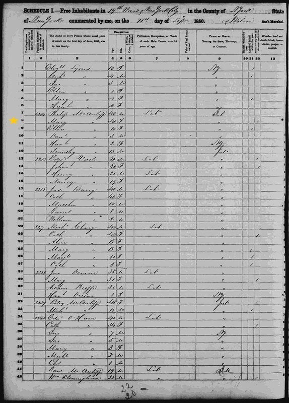 Mary McAuliffe; 1850 Census