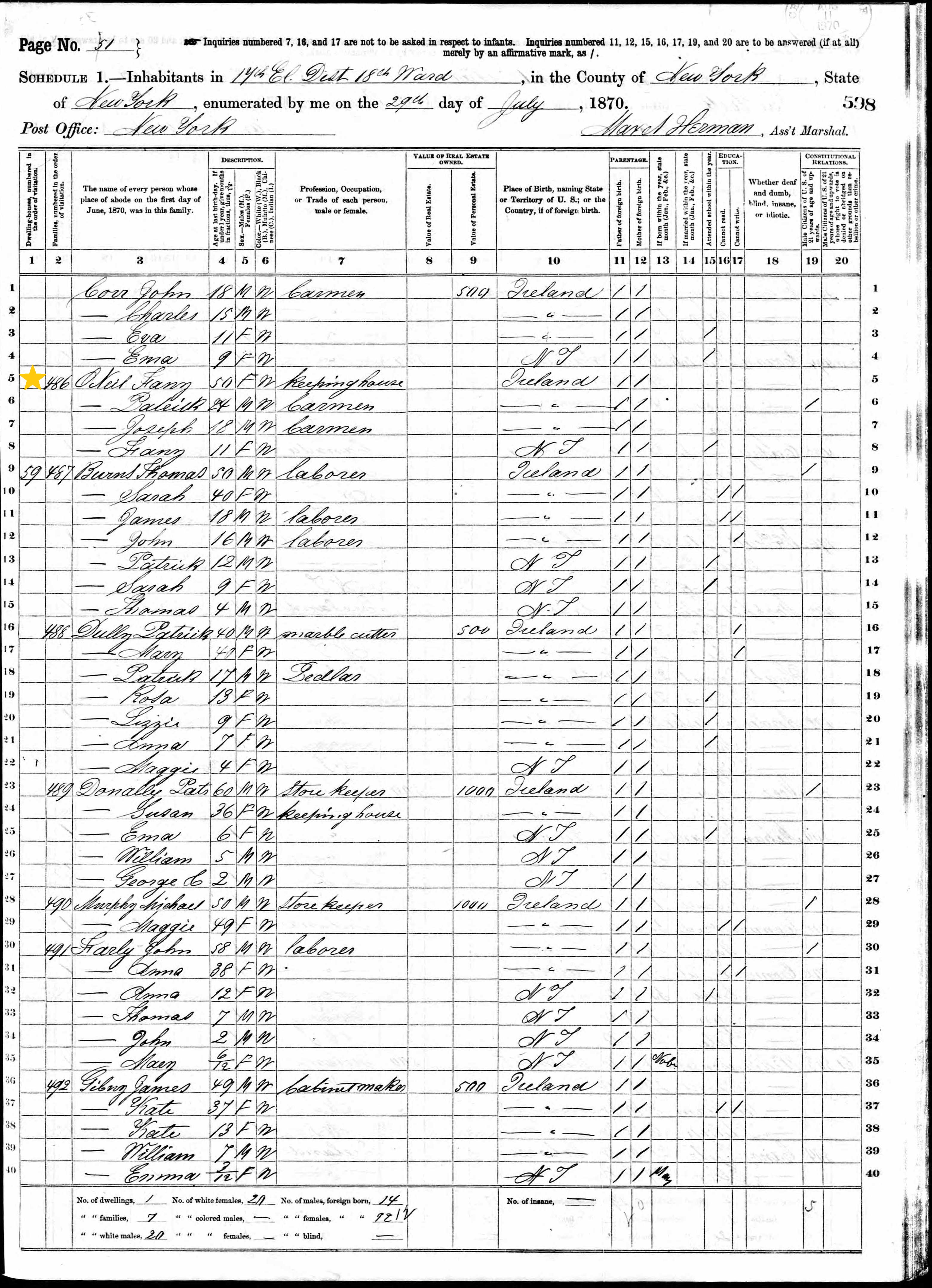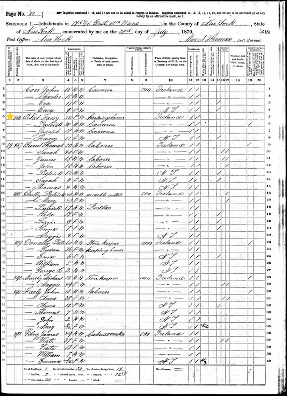 Fanny O'Neill; 1870 Census
