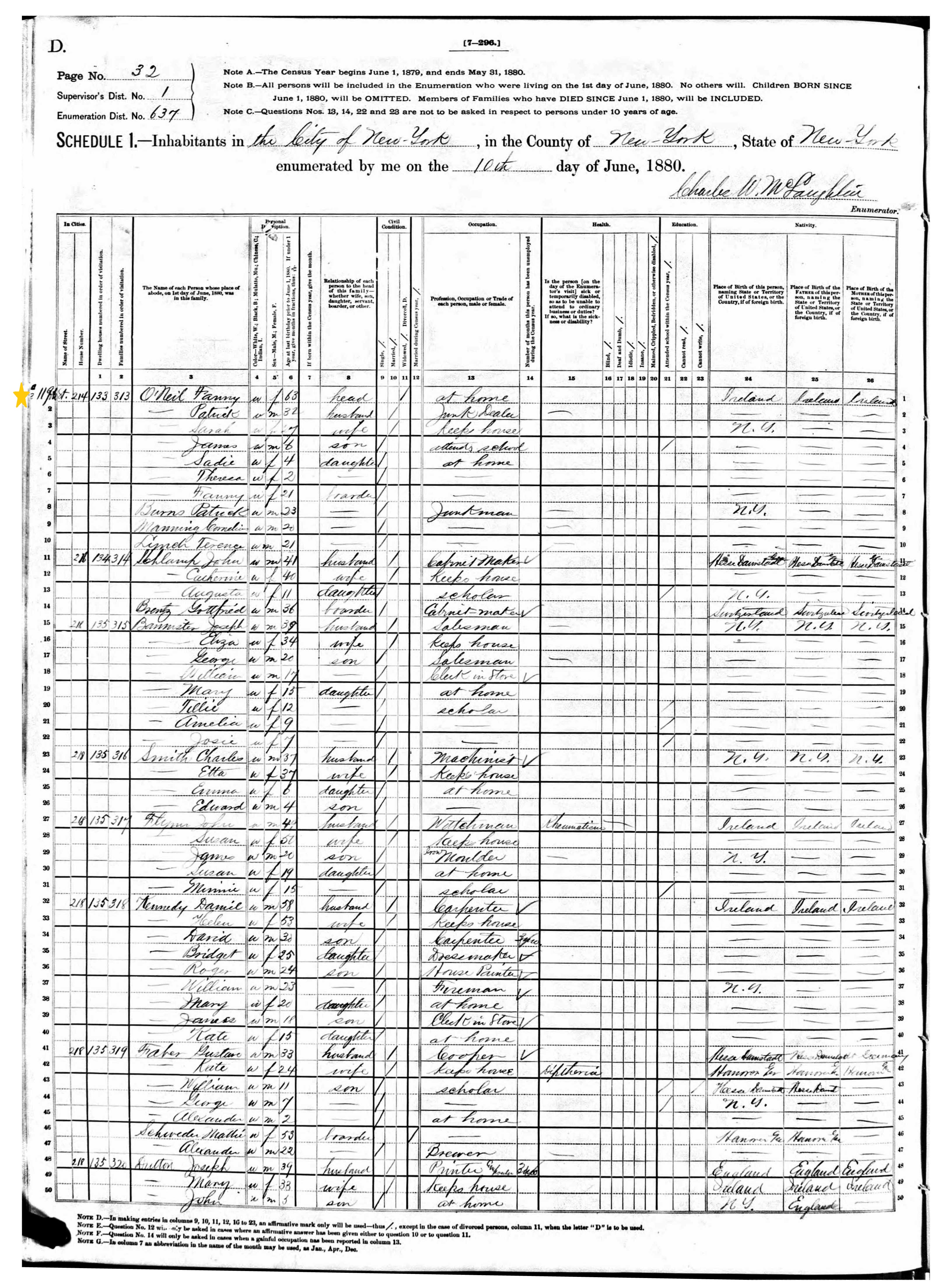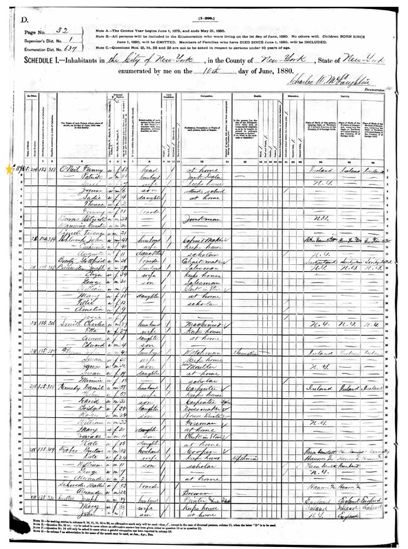 Fanny O'Neill; 1880 Census