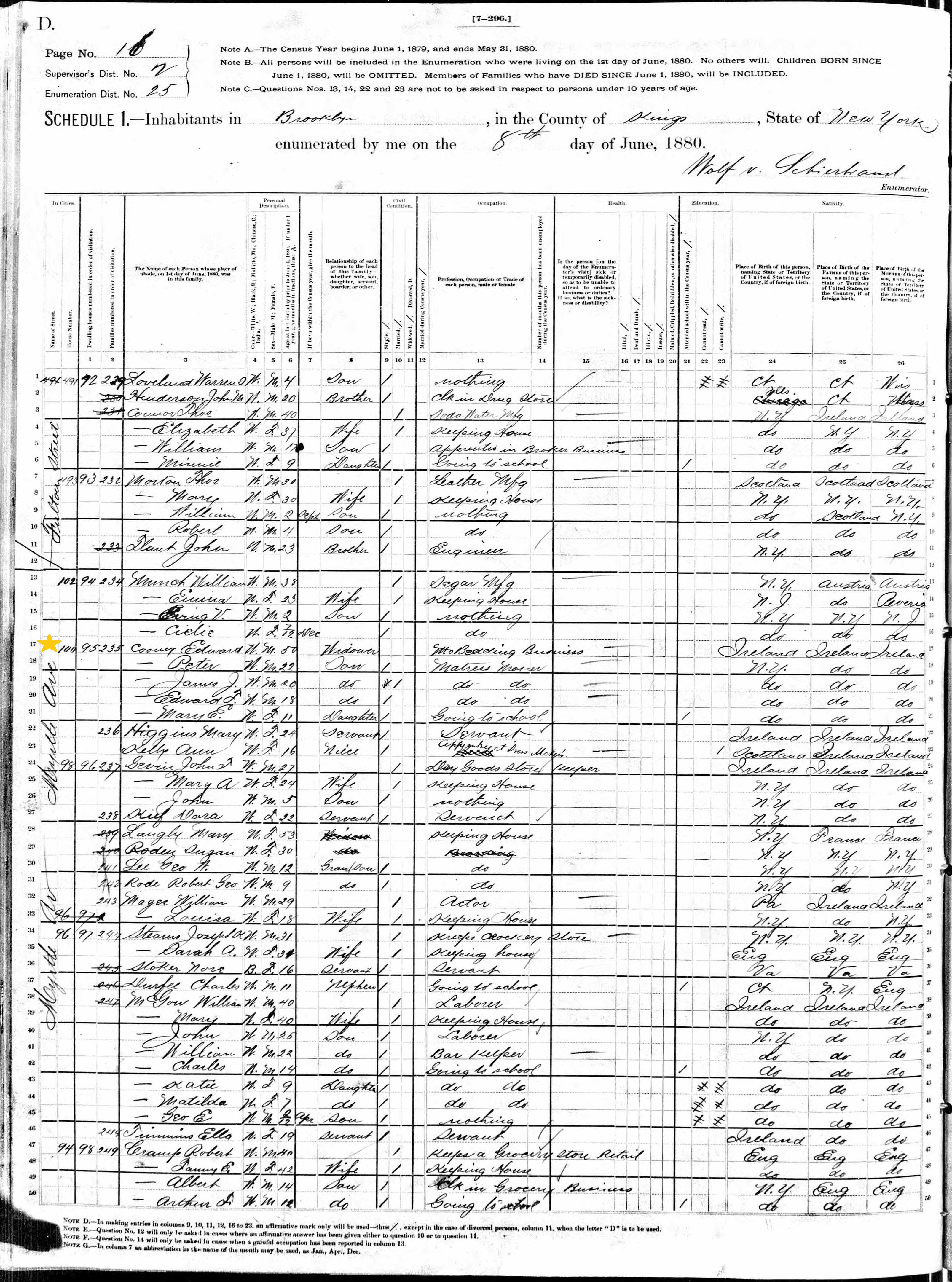 Edward Cooney; 1880 Census