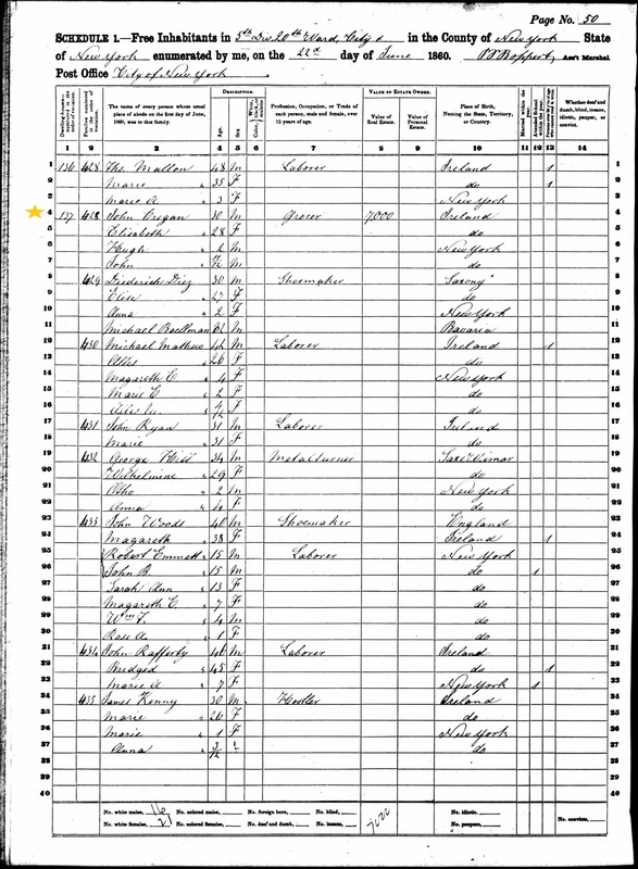 John Creegan; 1860 Census