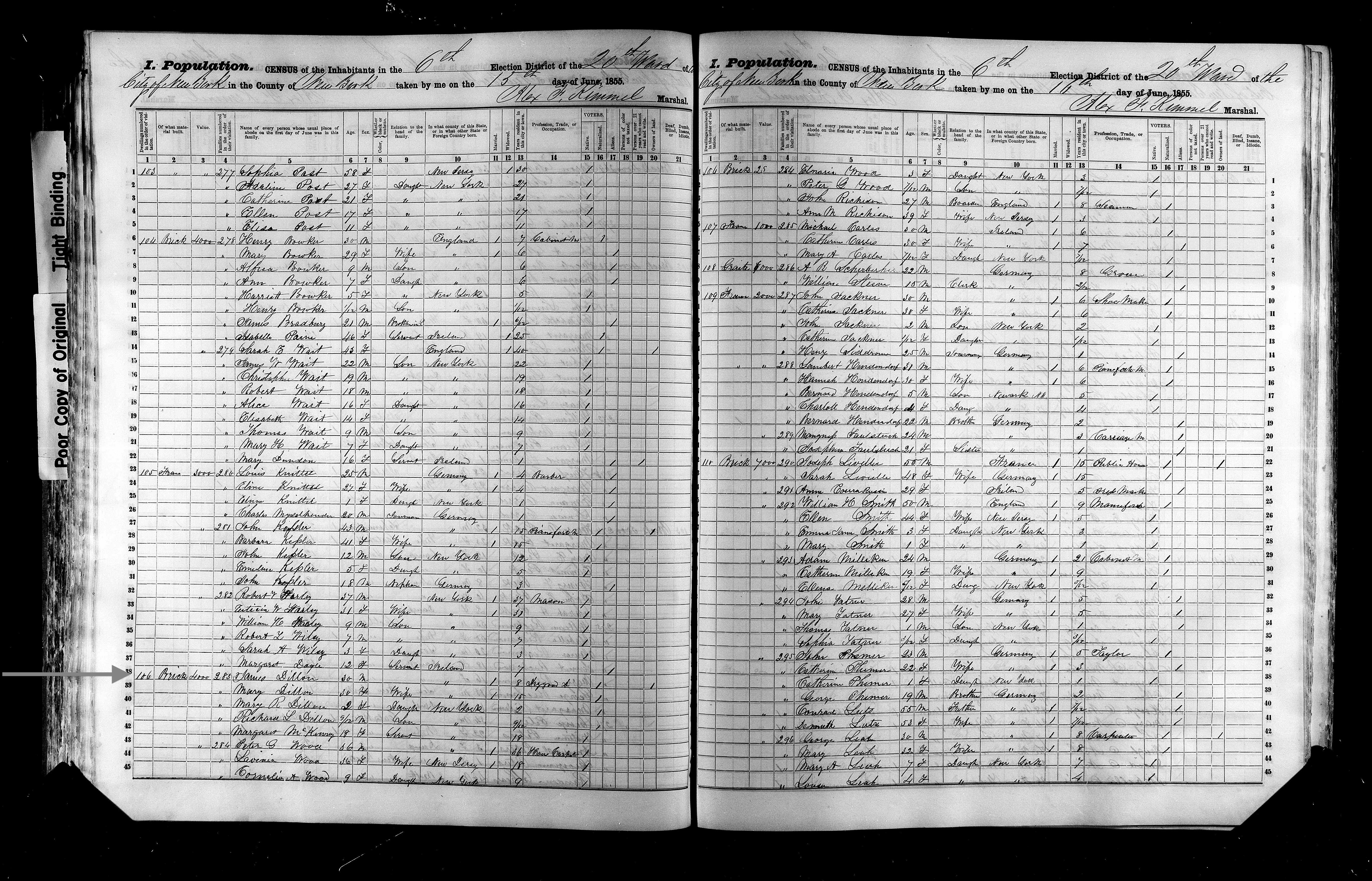 James Dillon; 1855 Census
