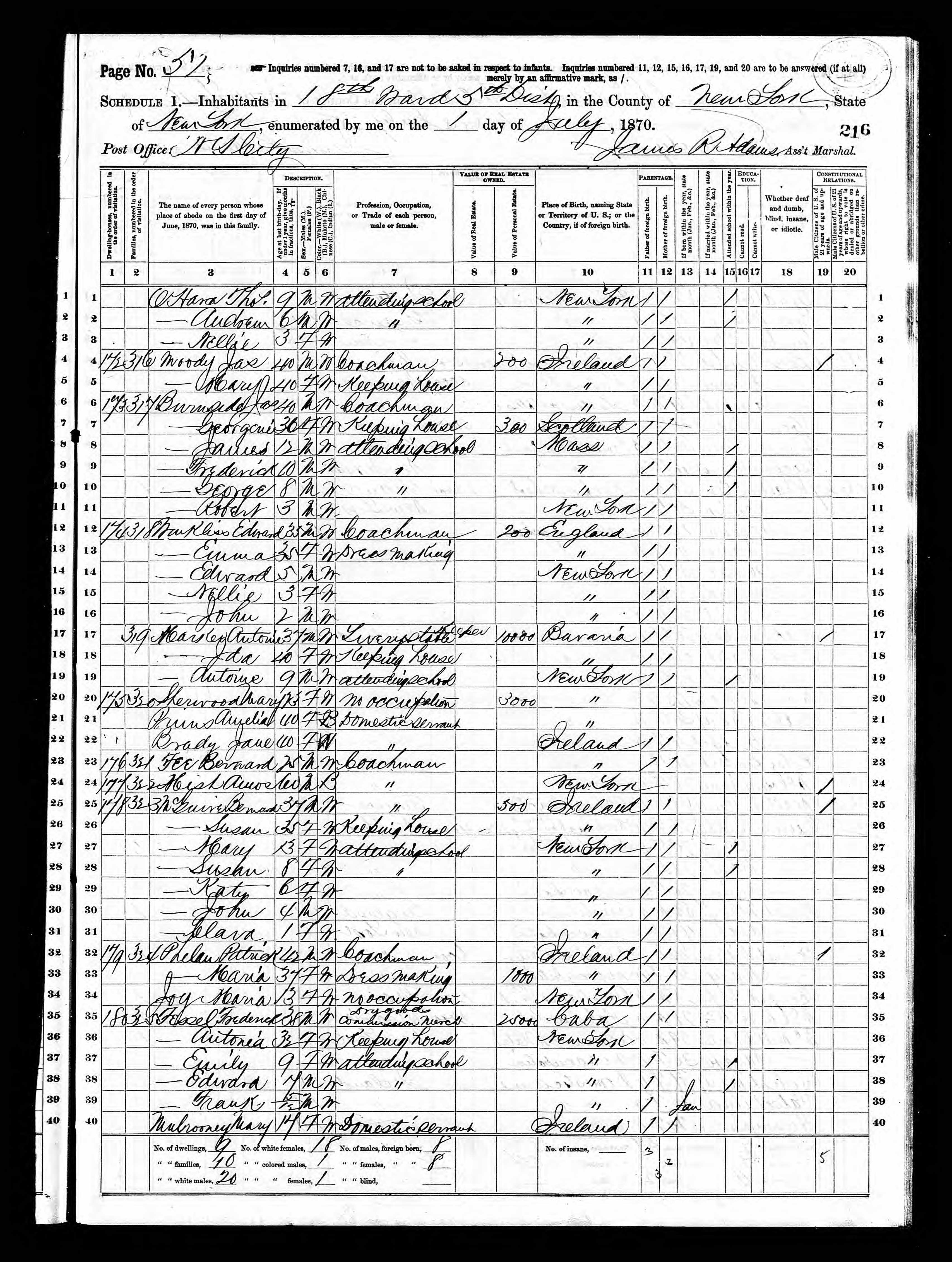 Maria and Patrick Phelan; 1870 Census
