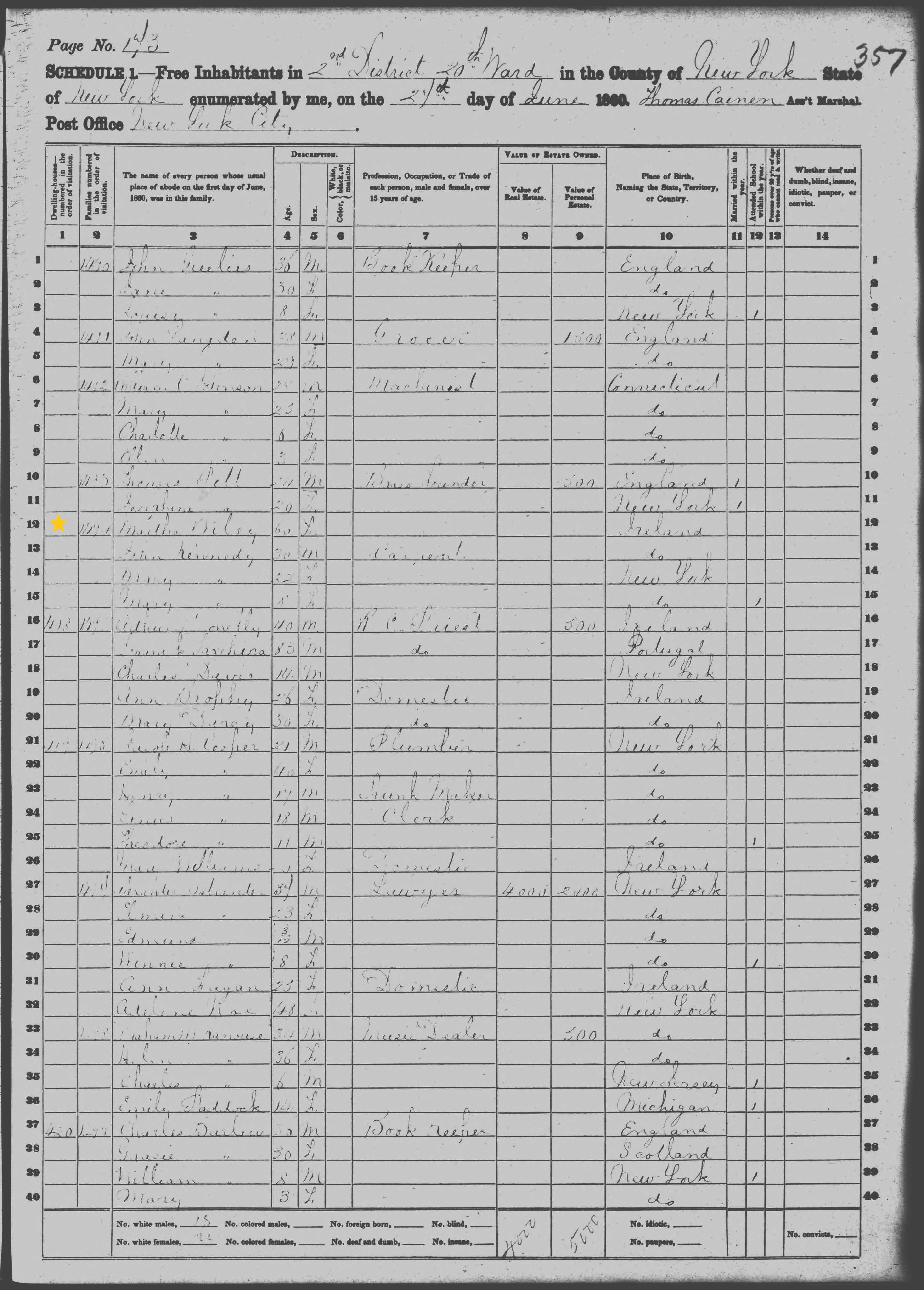 Martha Wiley; 1860 Census