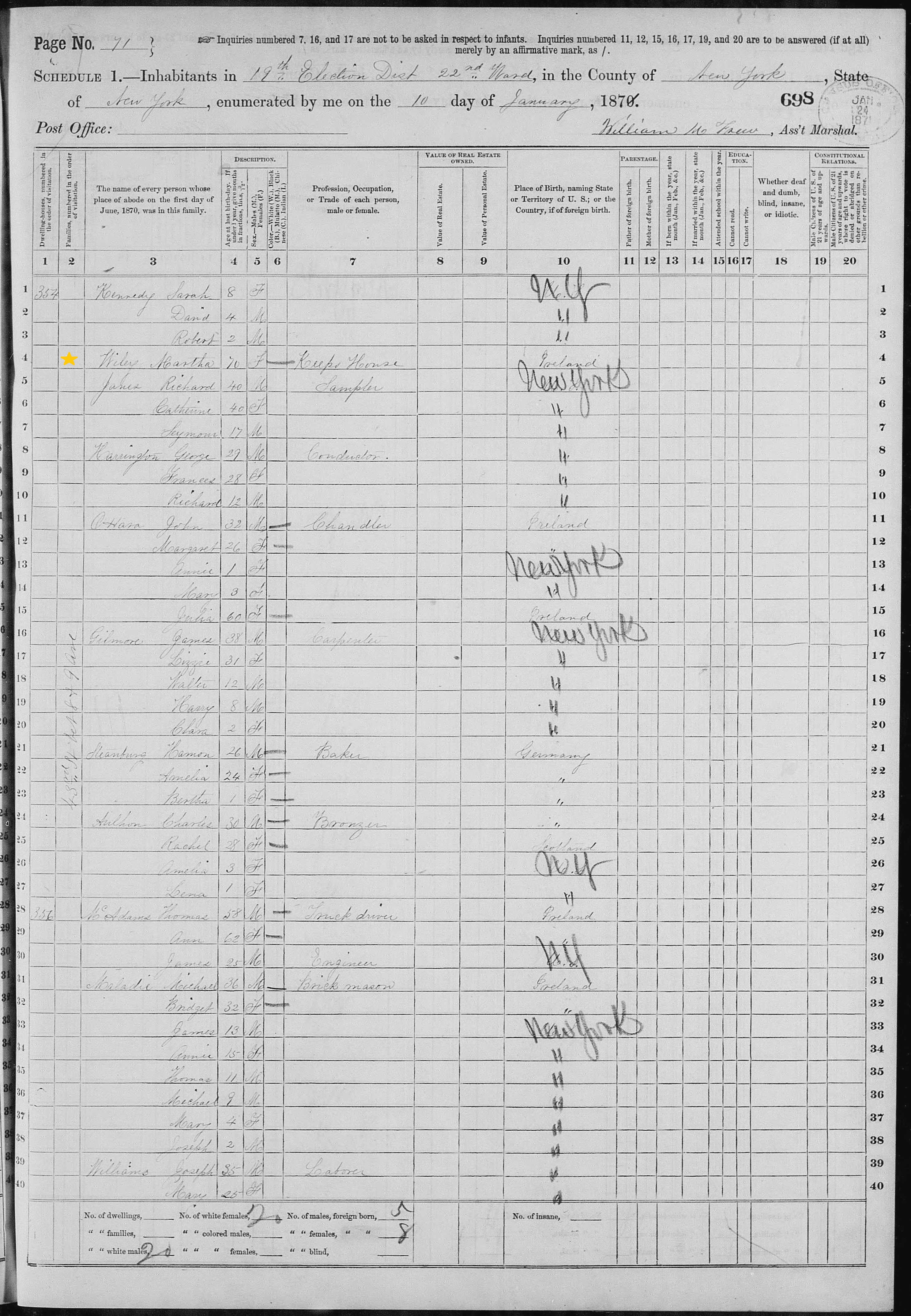 Martha Wiley; 1870 Census (2)