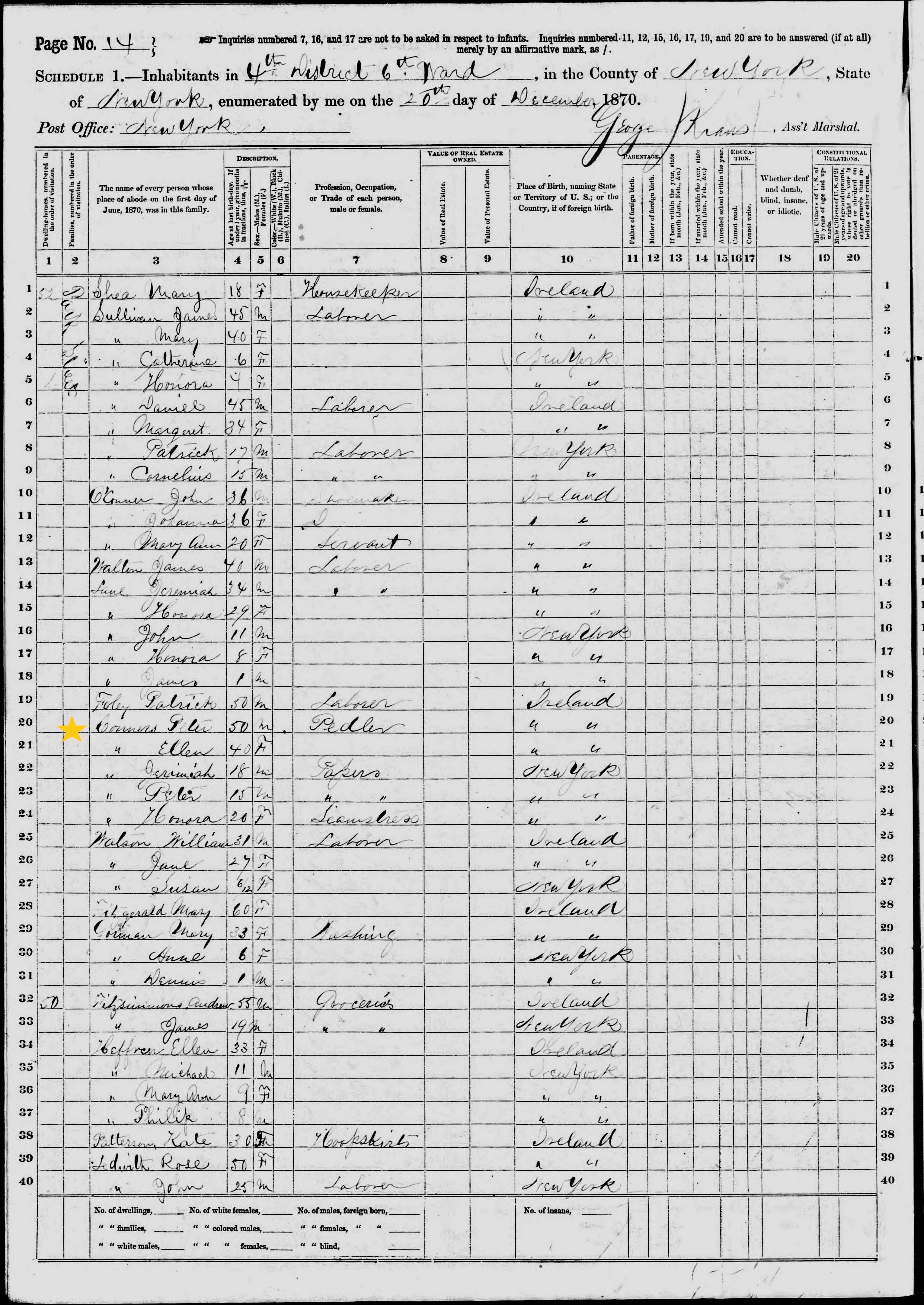 Peter Connor; 1870 Census