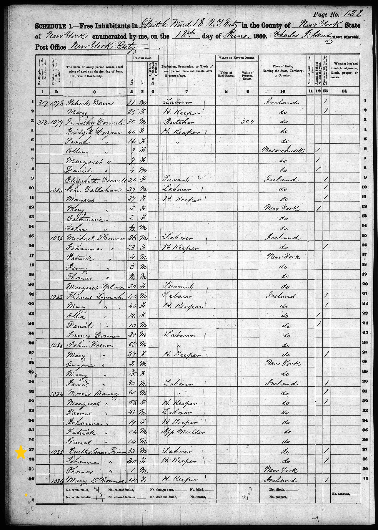 Bartholomew Finn; 1860 Census