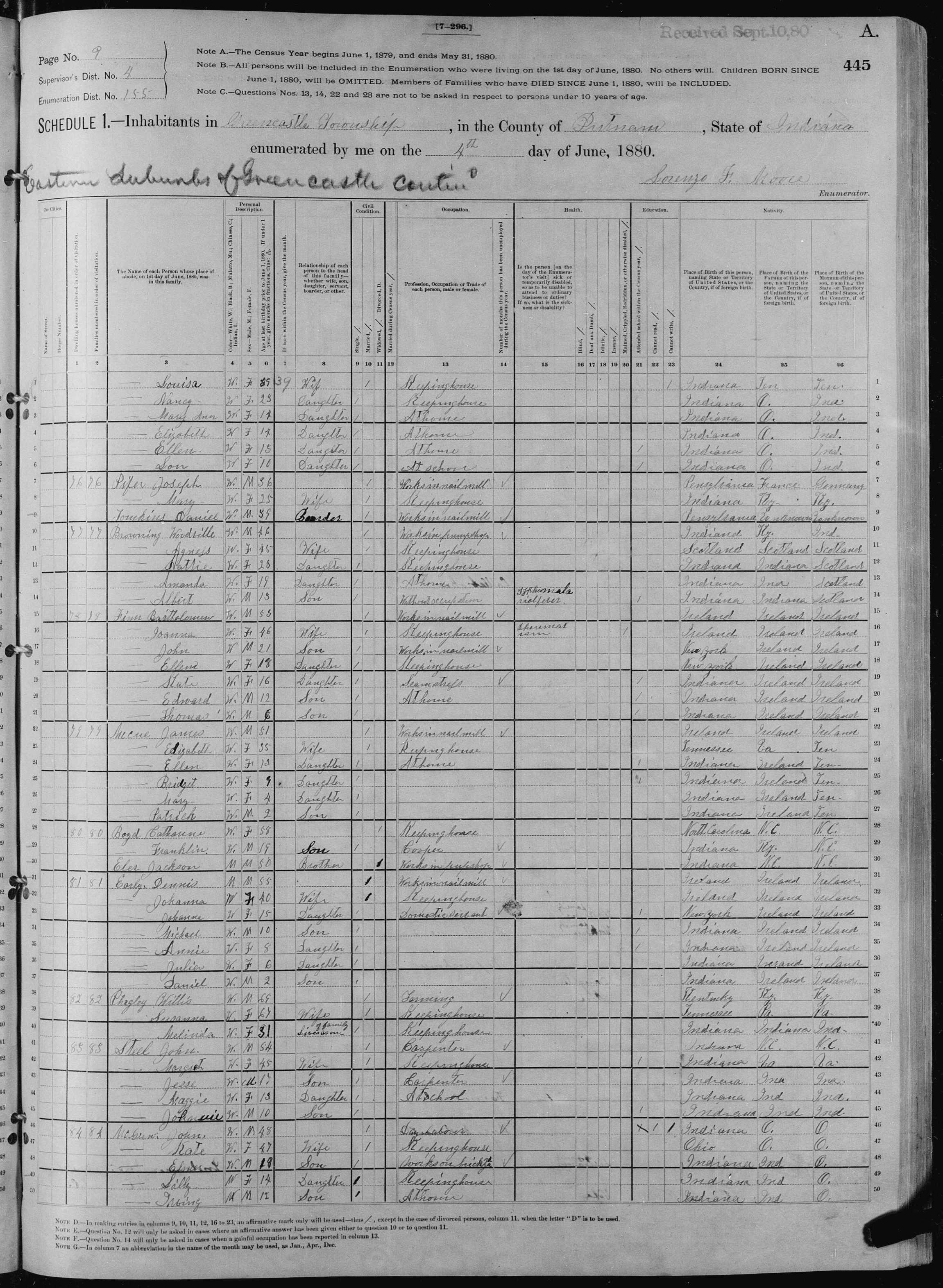 Bartholomew Finn; 1880 Census
