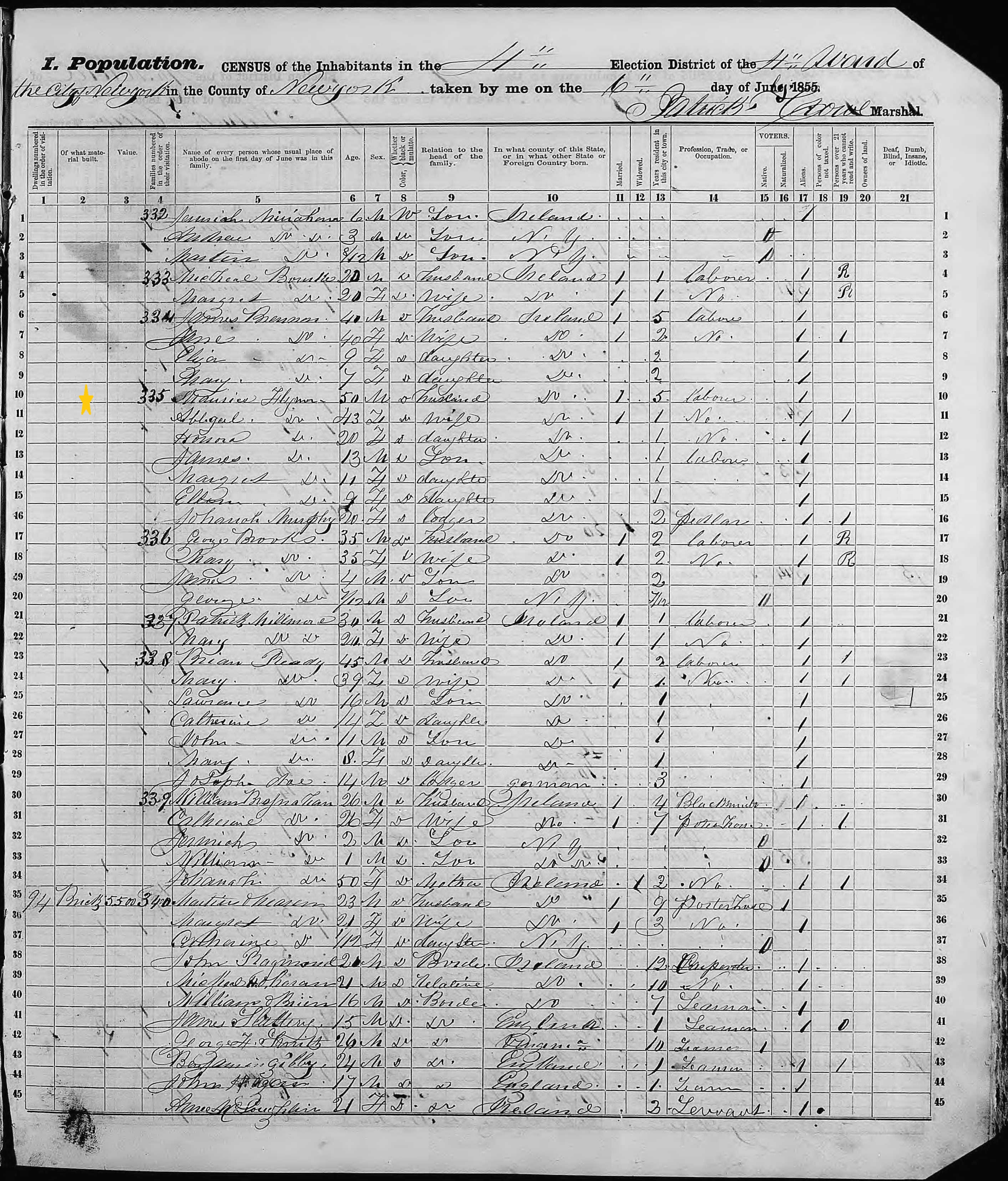 Maurice Flynn; 1855 Census