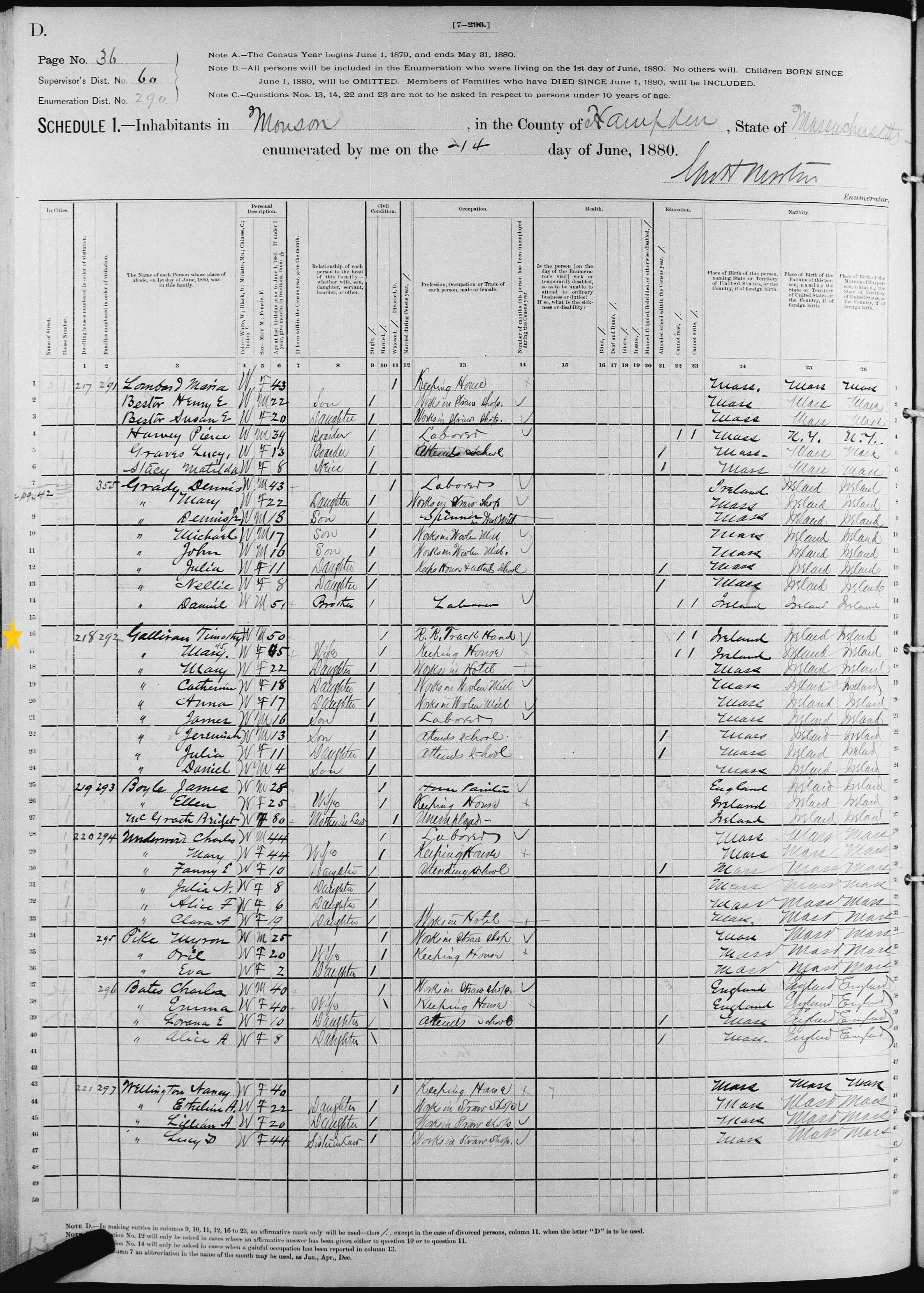 Timothy Gallivan; 1880 Census
