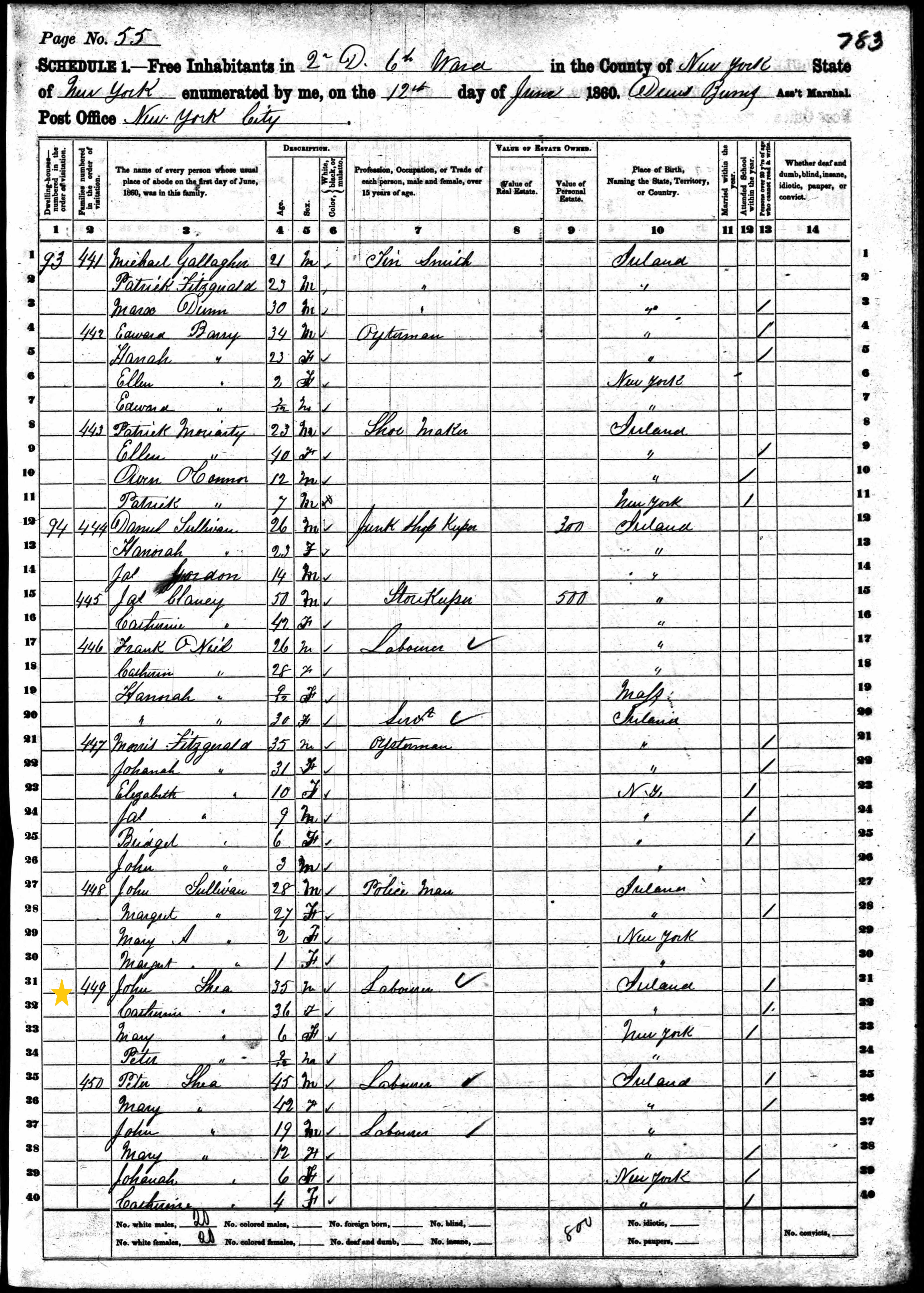 John and Catherine Shea; 1860 Census