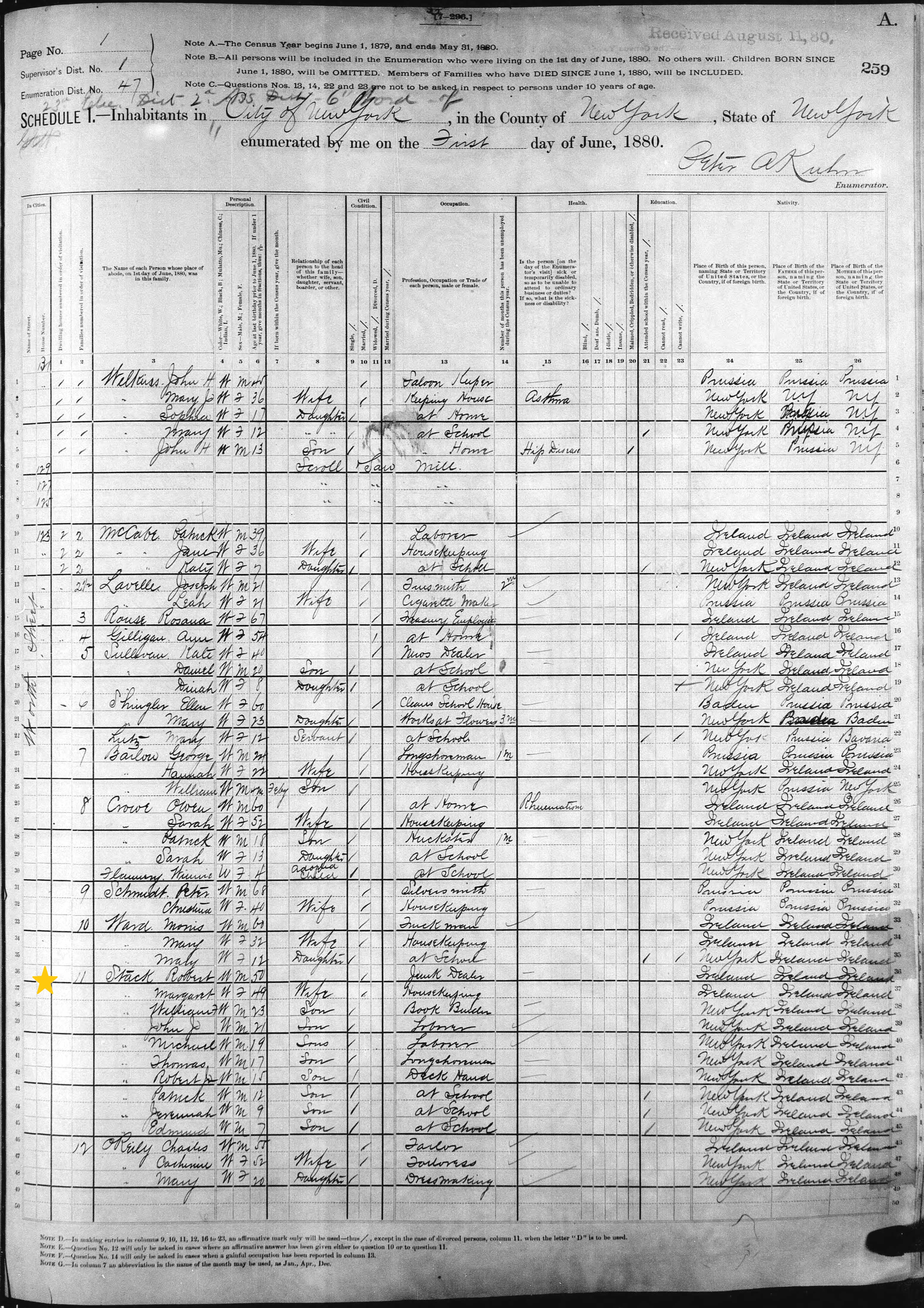 Robert Stack; 1880 Census