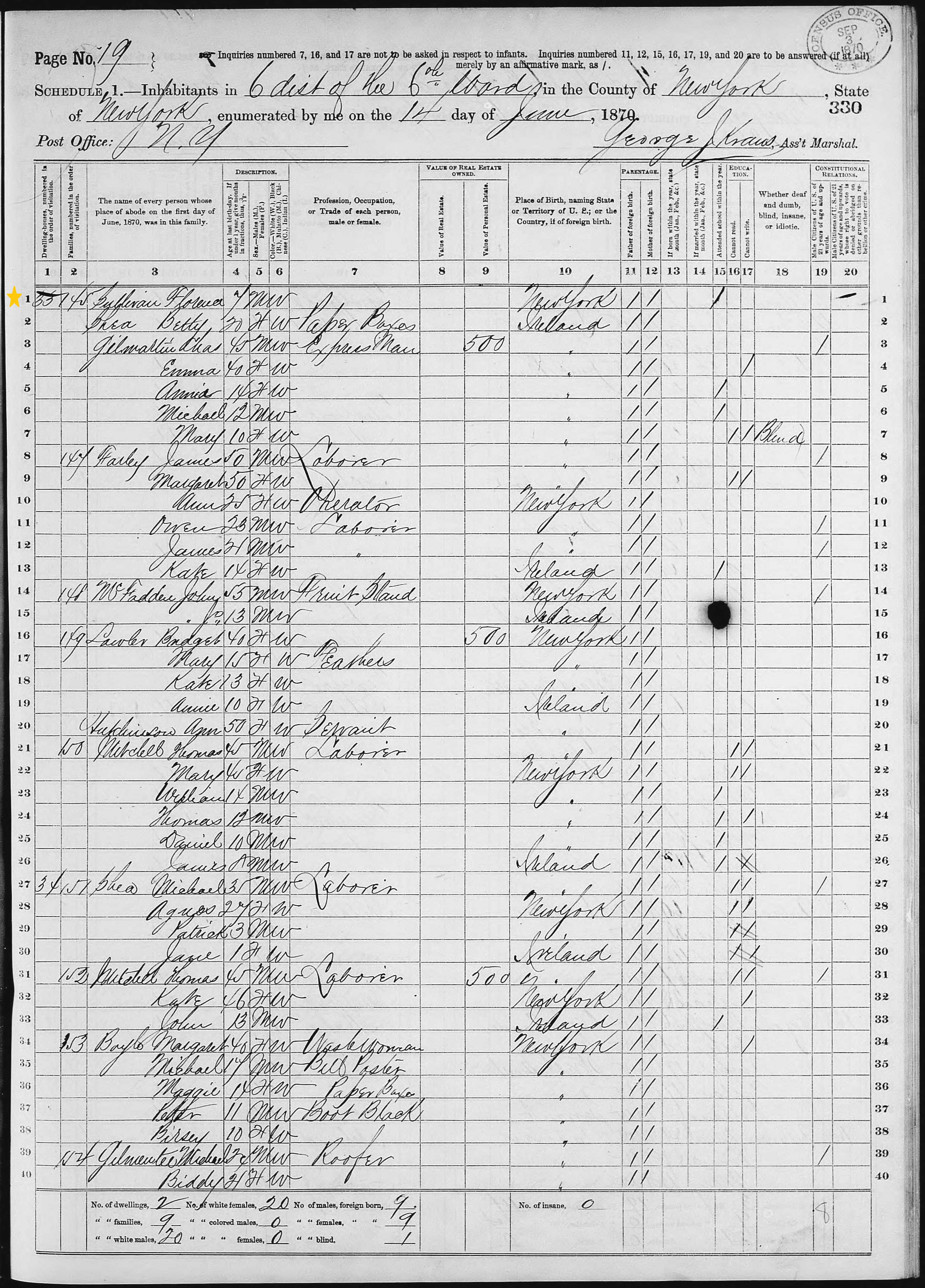 Ellen and Florence Sullivan; 1870 Census (2)