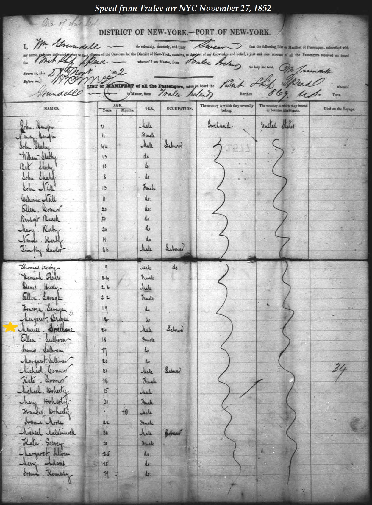 Maurice Spillane on Ship Manifest