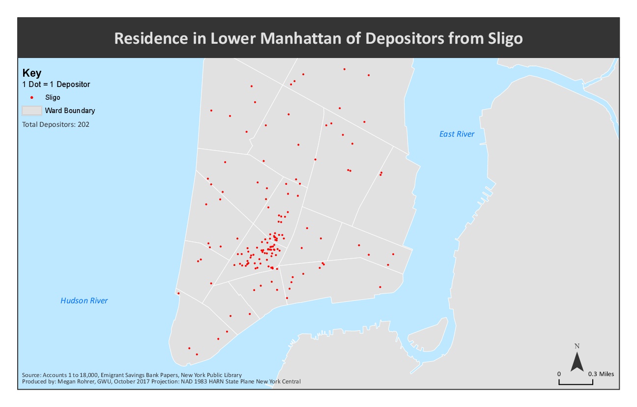 GIS map showing where immigrants from Sligo resided in New York