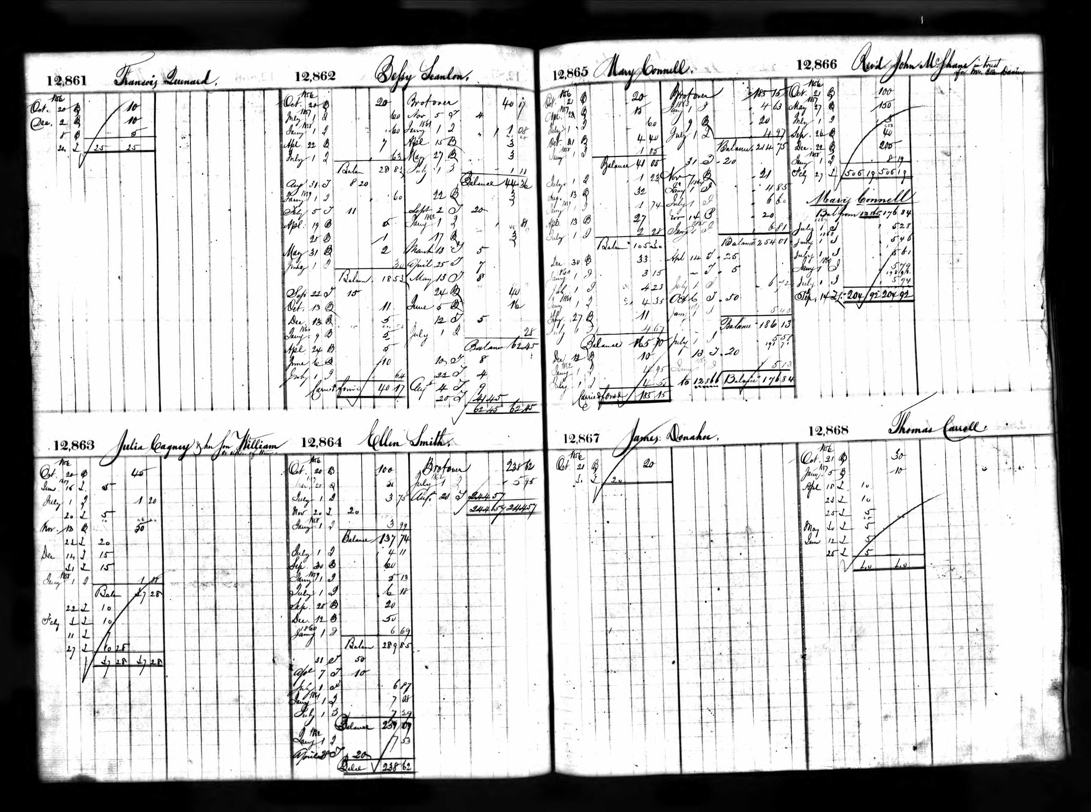 Mary Connell's Deposit Ledger